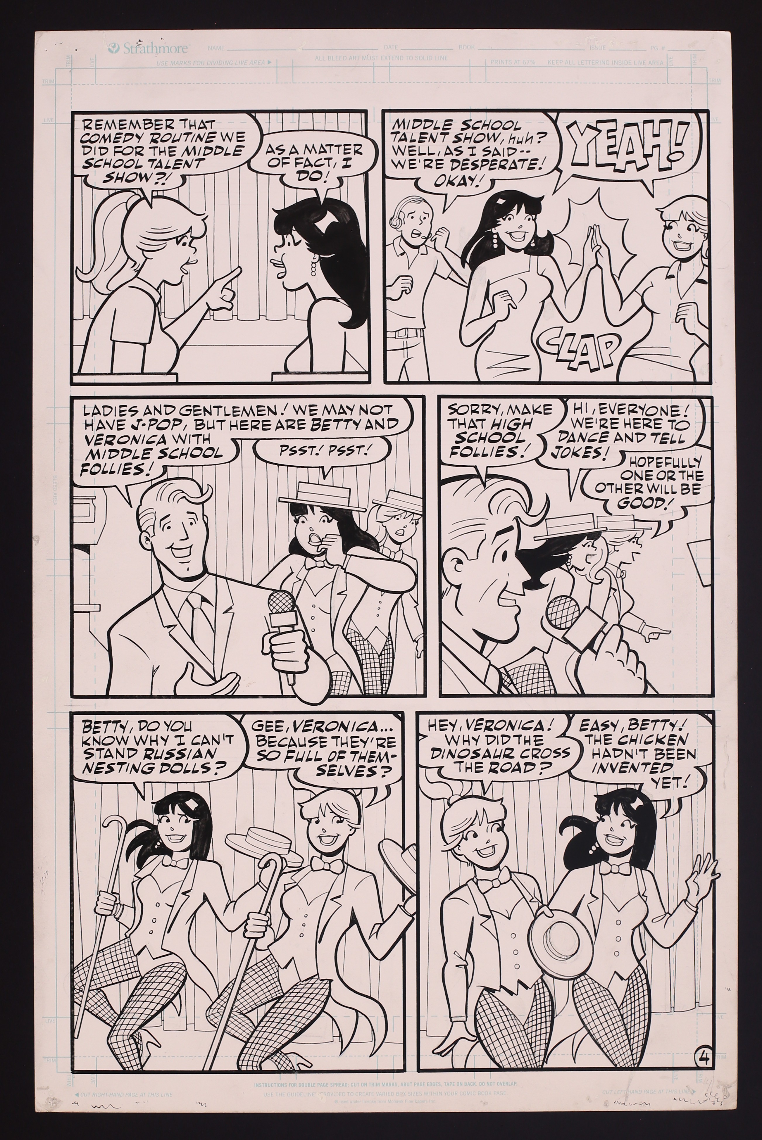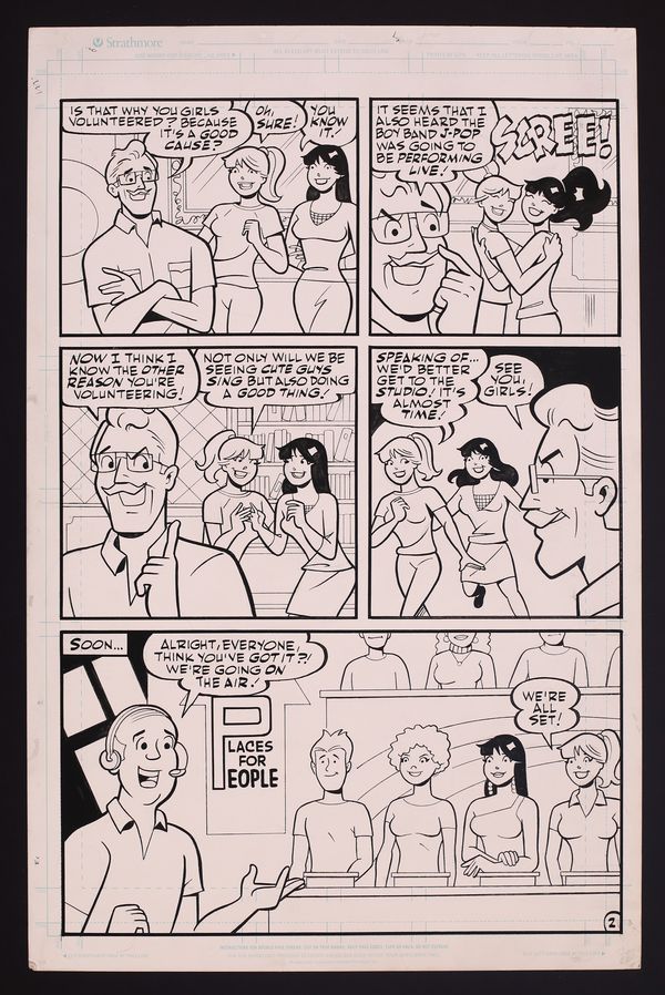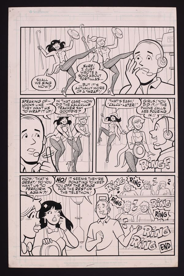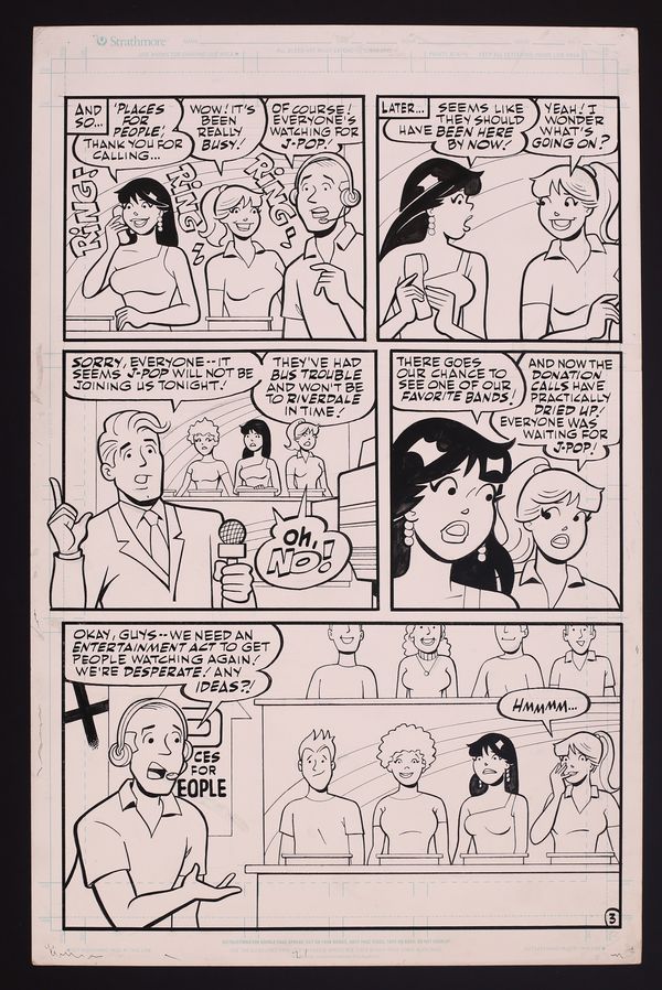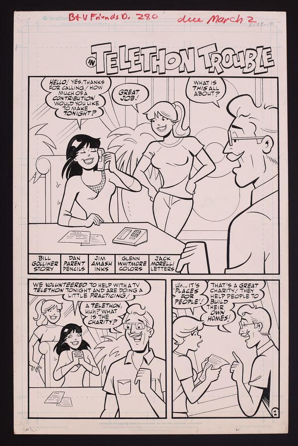 Original Art for B&V Friends Double Digest (2010) Issue 280, Pages 1-5 "Telethon Trouble" by Dan Parent and Jim Amash. Pencil and ink on Strathmore comic board. 11" x 17" each, B&W.