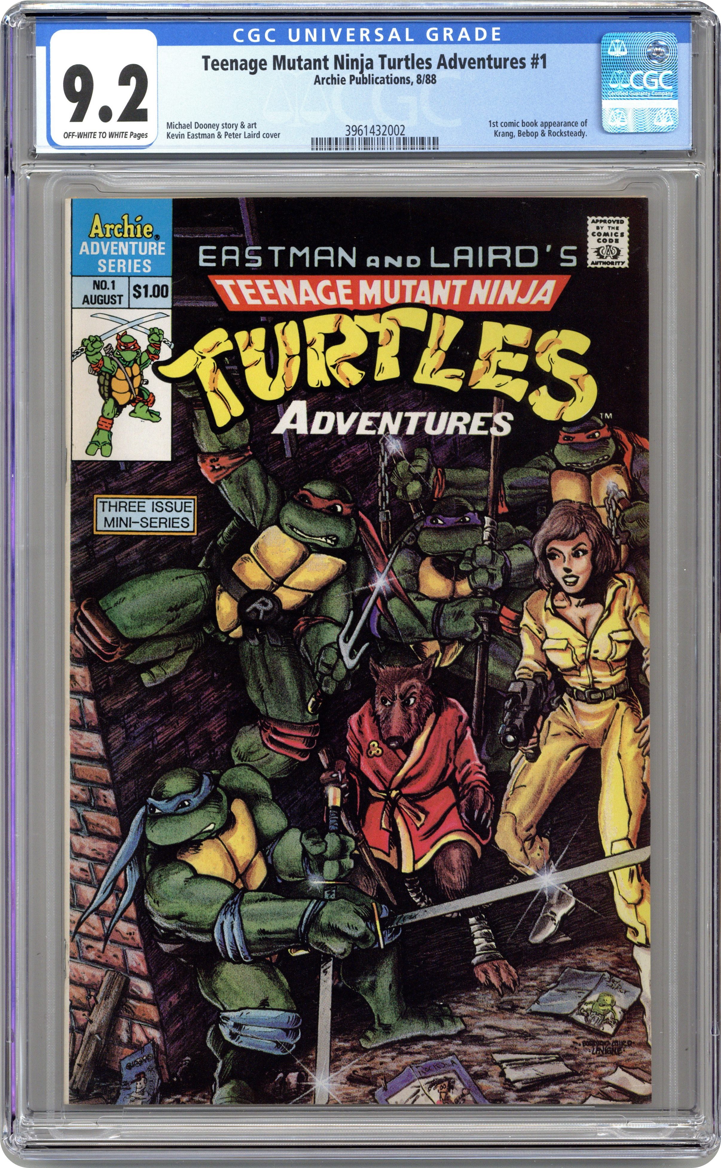 Direct Edition. Story by Michael Dooney, David Wiser, and Patti Howeth. Art by Michael Dooney and David Garcia. Cover by Kevin Eastman and Peter Laird. Cover price $1.00. Grade: CGC 9.2 explanation of grade Condition: Used (collectible)