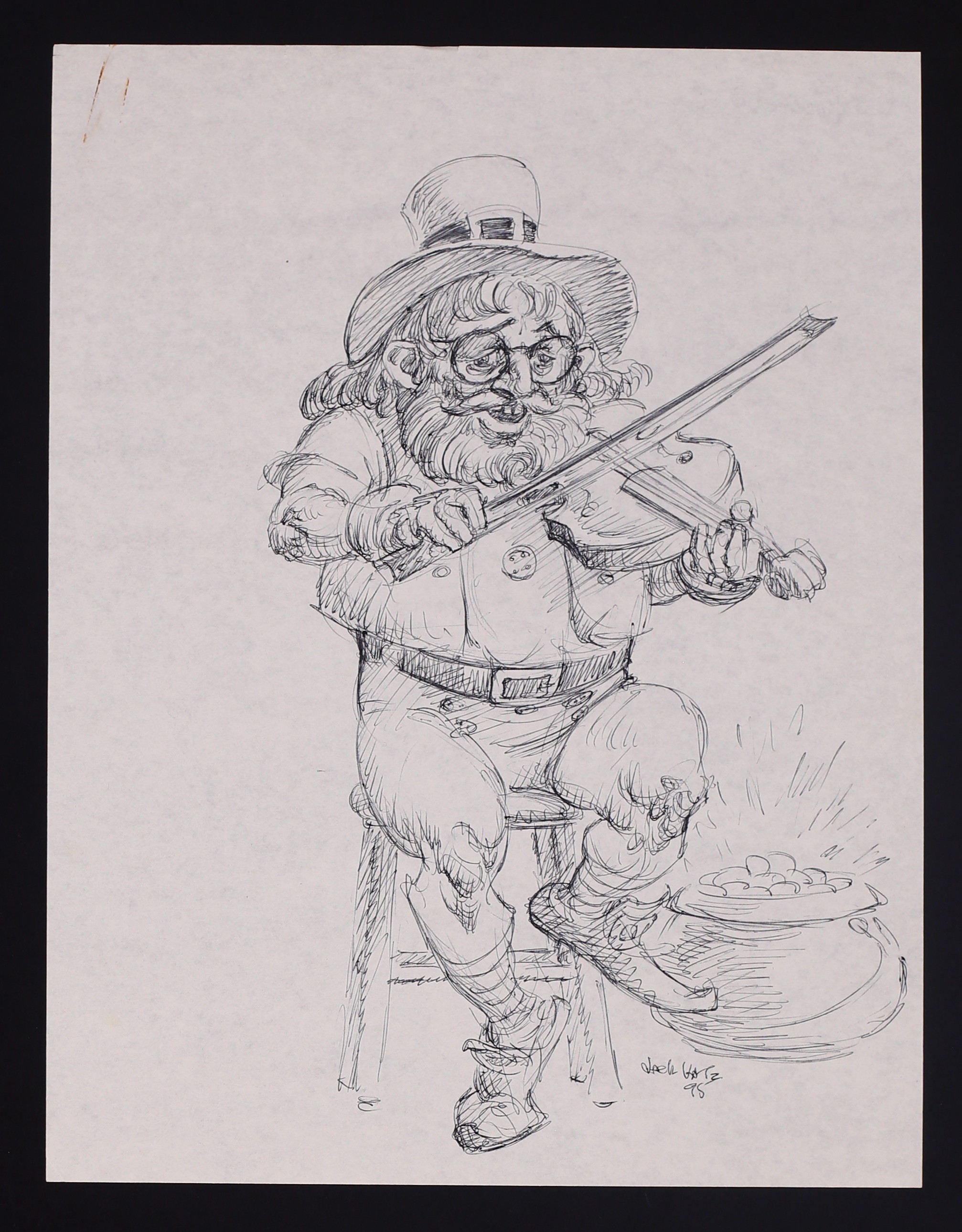 Leprechaun Sketch by Jack Katz. Signed by the artist. Pen on paper. 8 1/2" x 11", B&W.