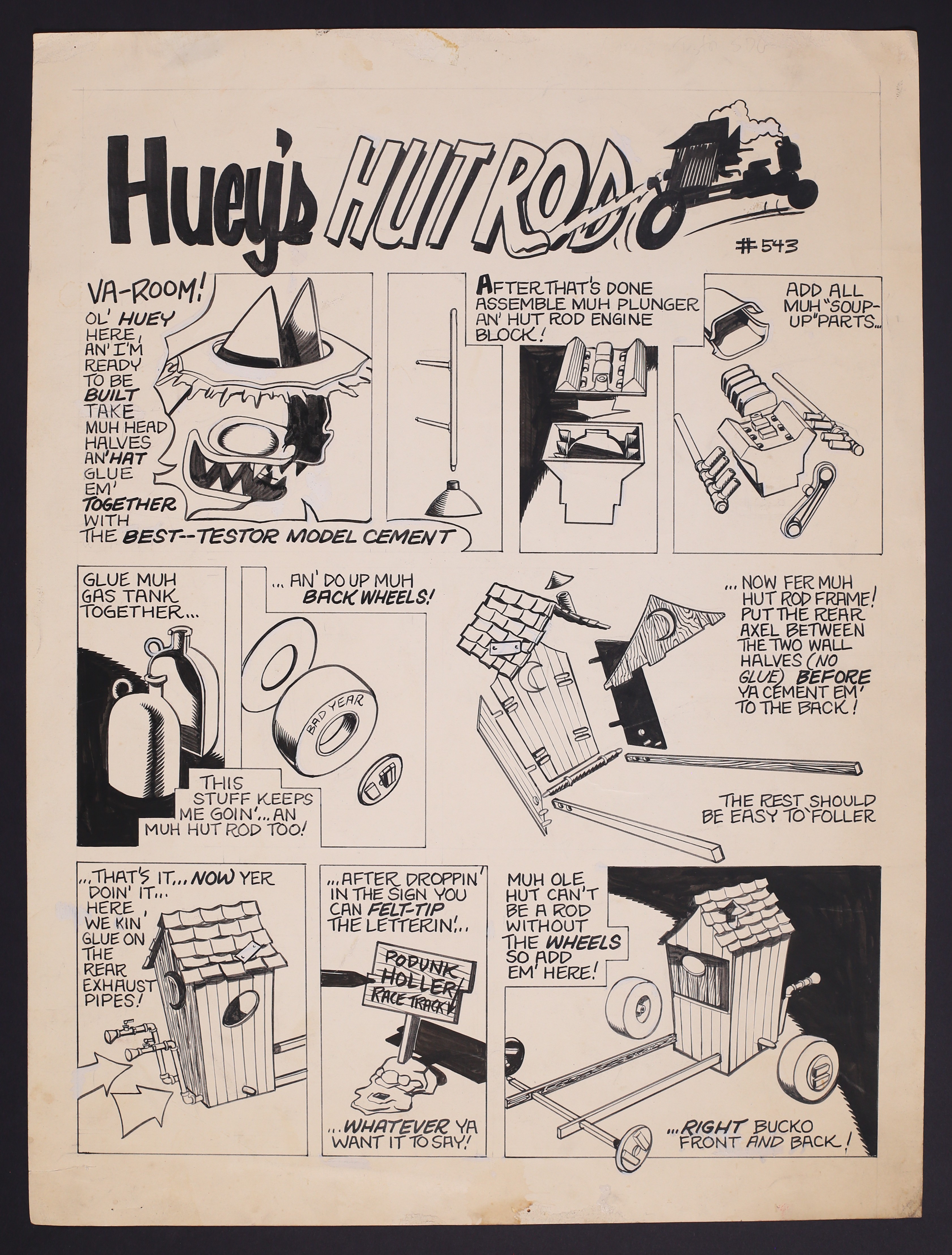 Original Art for Weird-Ohs Car-Icky-Tures Huey's Hut Rod Model Kit by Dick Kulpa. Pencil and ink on heavy stock. 14 1/2" x 19 1/2", B&W.