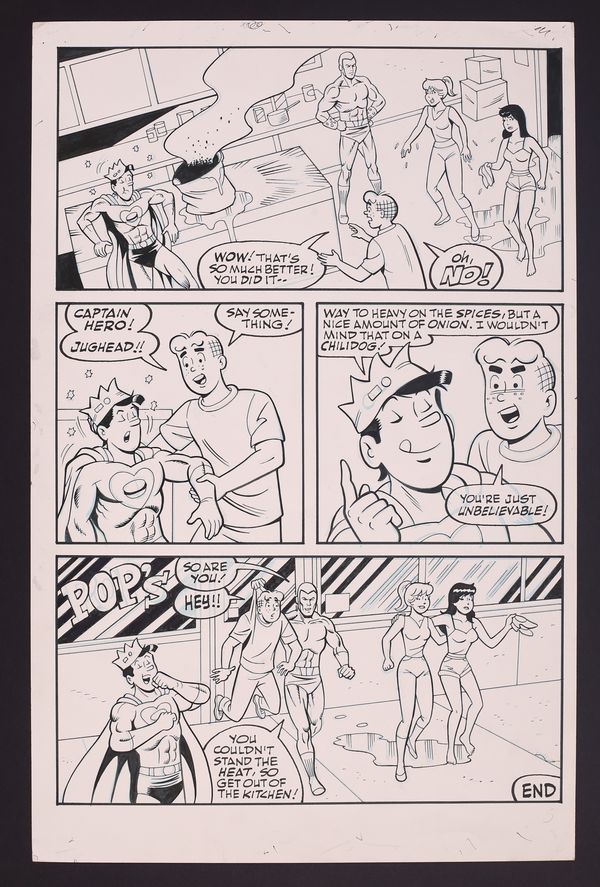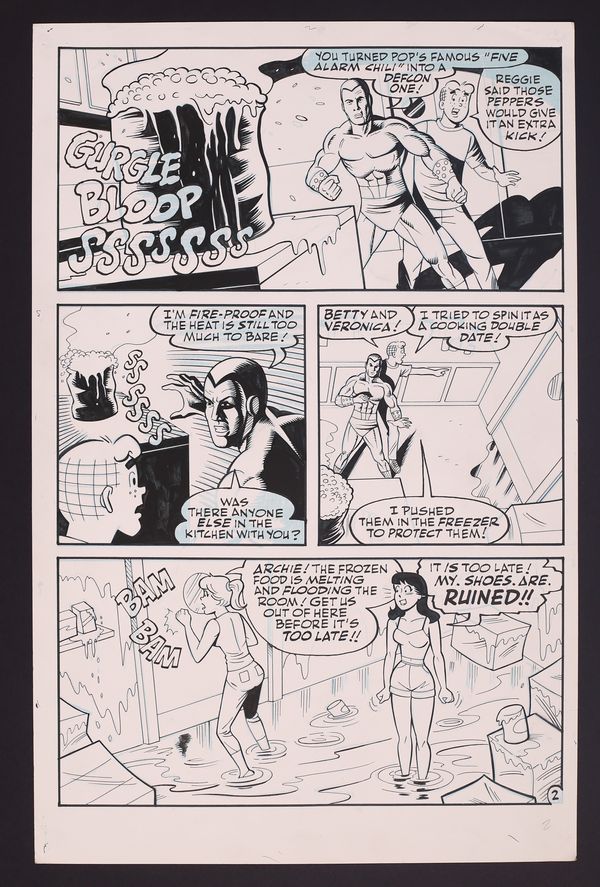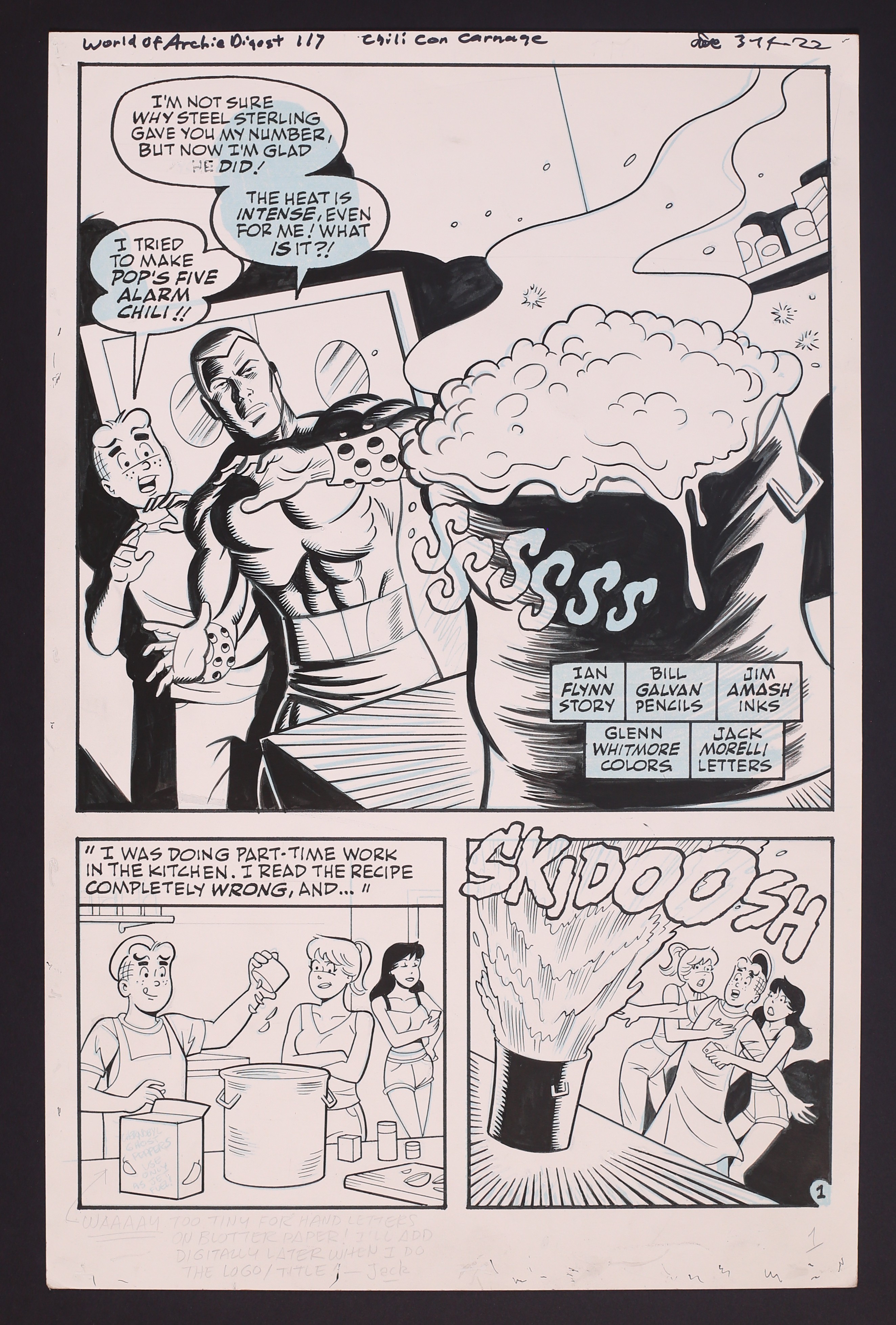 Original Art for World of Archie Digest (2010) Issue 119, Pages 1-5 "Chili Con Carnage" by Bill Galvan and Jim Amash. Ink over printed blue-line pencils. 11" x 17" each, B&W.