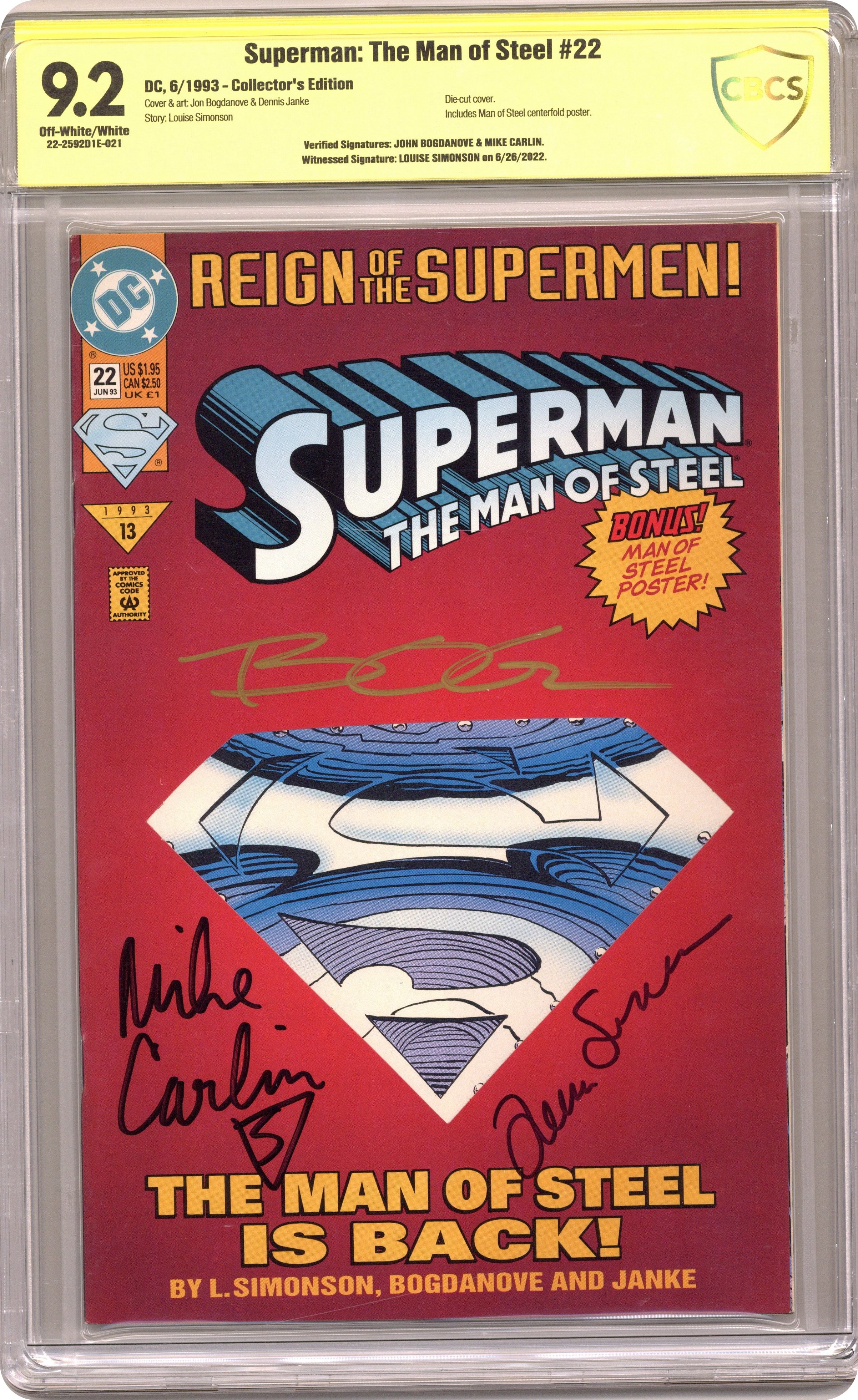 Superman The Man of Steel (1991) 22D CBCS 9.2 SS Bogdanove/Carlin/Simonson Die-Cut Variant