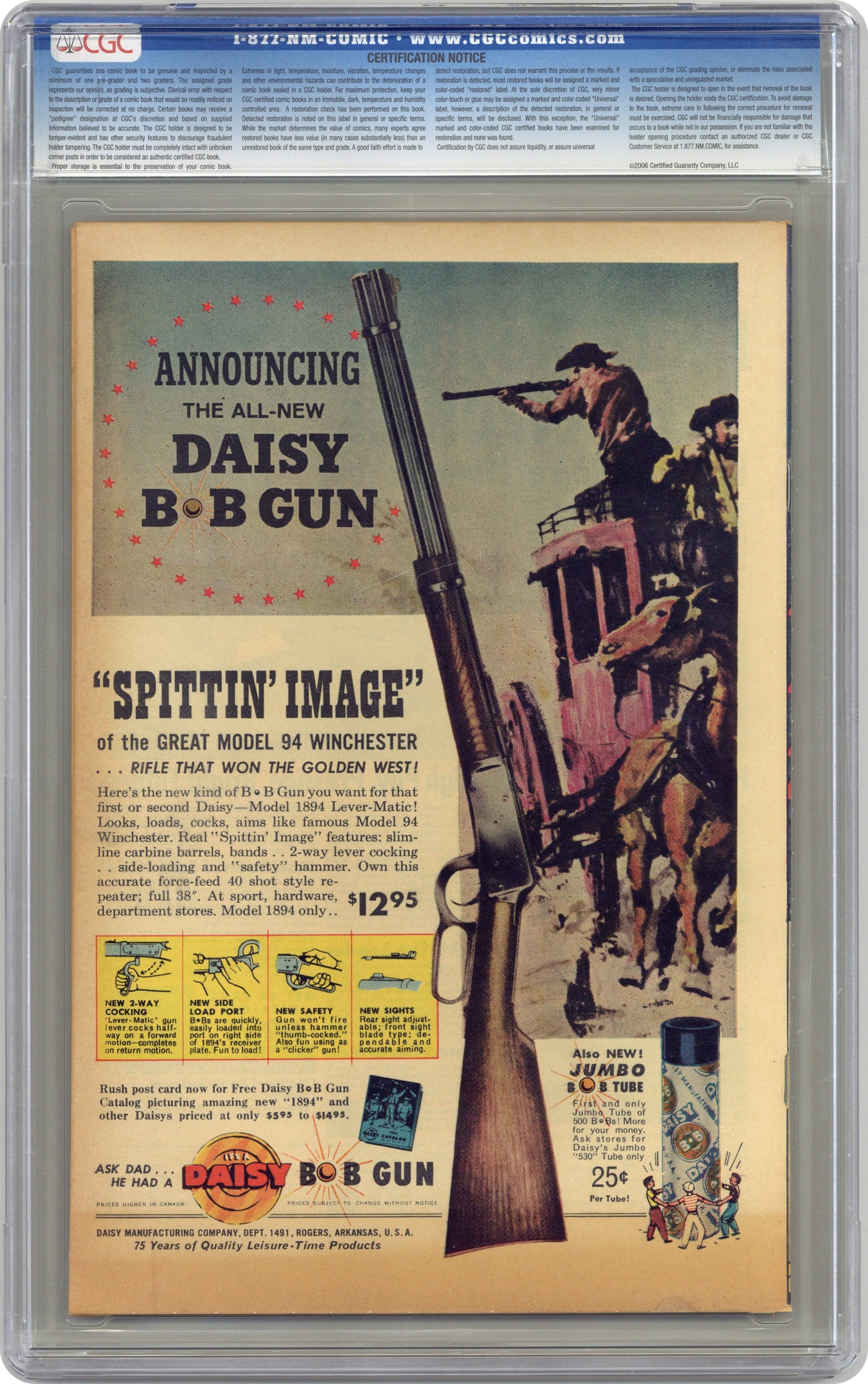 Ended Jan 25 2024 Winning Bid $320 Cover by Jack Kirby and Dick Ayers. I Am the... Gorilla-Man, script by Stan Lee and Larry Liebery, art by Jack Kirby and Dick Ayers; An inventor transfers his mind into a gorilla to commit crimes, but the gorilla controlling his body turns against him. The Green Hat text story. Midnight on Haunted Hill, script and art by Stan Lee and Larry Lieber, art by Jack Kirby and Dick Ayers; A boy sees an alien landing, but no one believes him until the spaceship comes back. The Scheme!, art by Gene Colan; An insolvent cad marries a rich widow dying of a terminal sickness for her money, but finds when she dies that the disease is contagious and he has only months to live. The Frightening Fog, art by Steve Ditko; A mysterious fog envelops the entire world for days, terrifying everyone. 36 pgs., full color. $0.12. Cover price $0.12. Grade: CGC 7.5 explanation of grade Condition: Used (collectible)