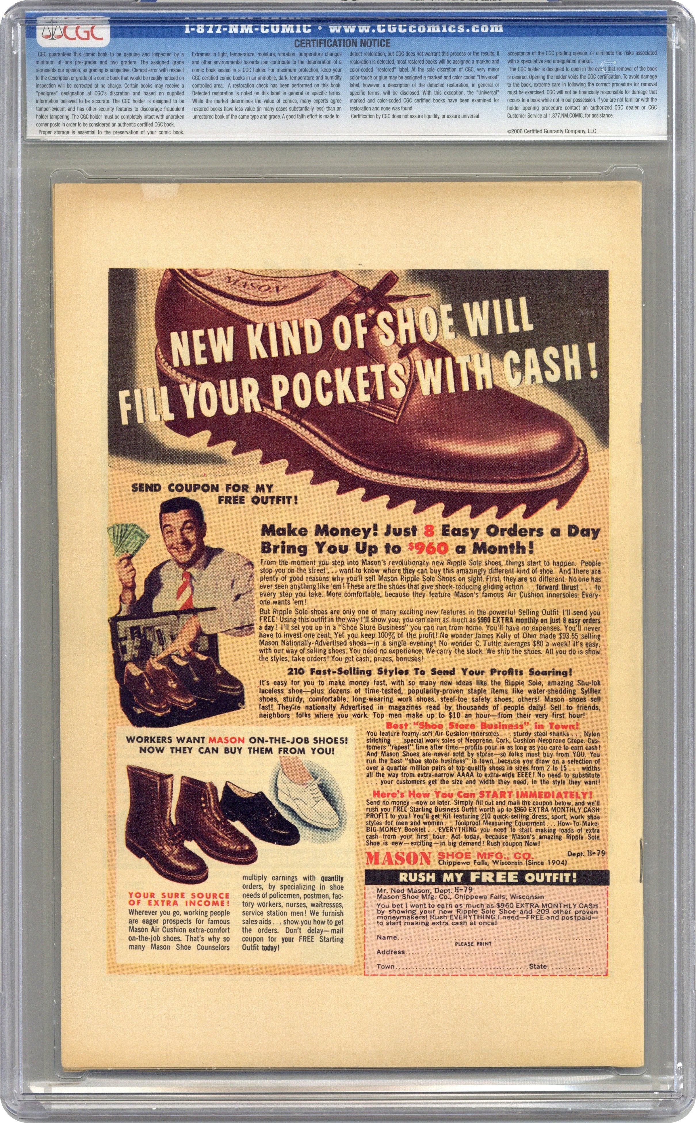 Ended Oct 13 2023 Winning Bid $334 Cover by Jack Kirby and Dick Ayers. When the Space Beasts Attack!!, art by Jack Kirby and Dick Ayers; An alien armada lands on Earth with weapons that seem to disintegrate anything. The Clock text story. The Man Who Blew Up the Earth!, art by Jack Kirby and Dick Ayers; A jilted Quasimodo-like scientist devotes all his energy into producing a cobalt bomb which is so powerful that it can shatter the Earth. What Happened to Harry?, art by Dick Ayers; A brilliant inventor's boss tries to steal his new time machine in order to take credit for it. The Last Laugh! script by Stan Lee, art by Steve Ditko; A vicious practical joker gets his comeuppance in the afterlife. 36 pgs., full color. $0.12. Cover price $0.12. Grade: CGC 7.5 explanation of grade Condition: Used (collectible)