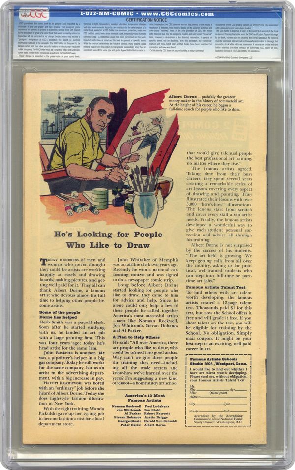 Ended Jul 13 2023 Winning Bid $333 Cover art by Jack Kirby and Paul Reinman. Dead Storage, art by Jack Kirby and Dick Ayers; A burnt-out actor stumbles upon an alien invasion, and gives the best performance of his life to save Earth. The Comic text story. The Frightened Man!, art by Jack Kirby and Dick Ayers; A scientist tries to use a time machine to escape the dangers of the modern world, but he finds that every era has its dangers. The Voice of Fate!, art by Don Heck; The Fates make a wager over whether humans will ever understand that they cannot escape them. The Absent-Minded Professor!, script by Stan Lee, art by Steve Ditko; A college professor is certain that life exists upon other worlds, but can't quite remember why he is so assured of this fact. 36 pgs., full color. $0.12. Cover price $0.12. Grade: CGC 7.5 explanation of grade Condition: Used (collectible)