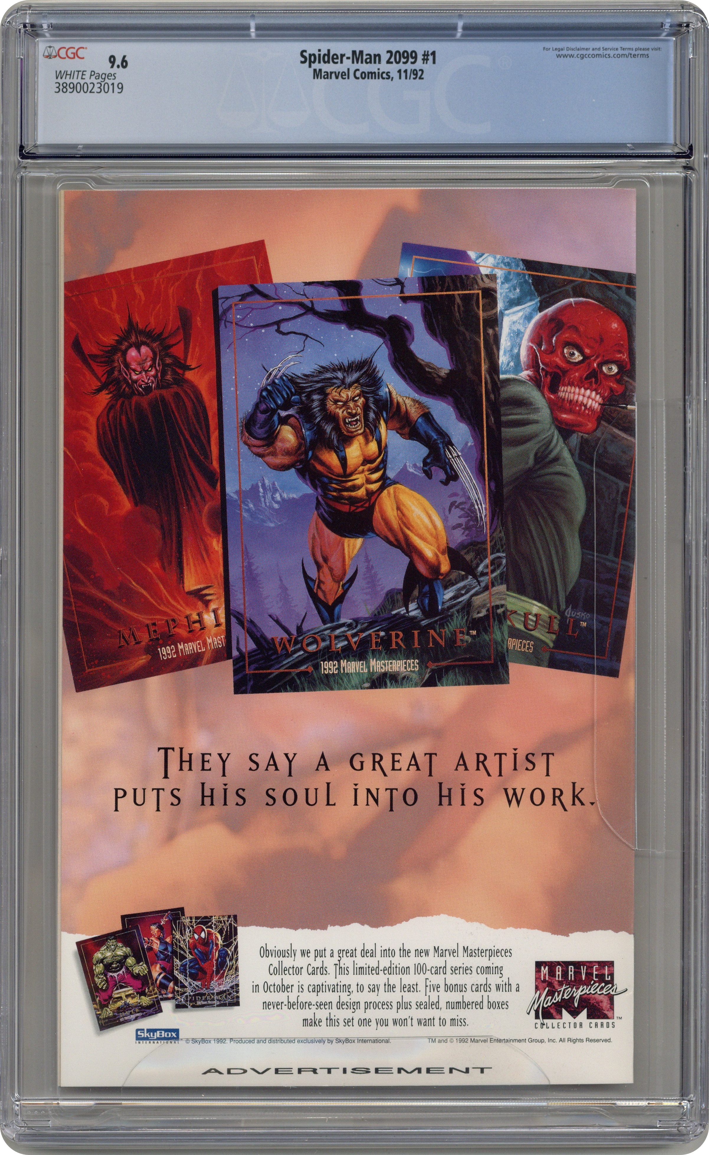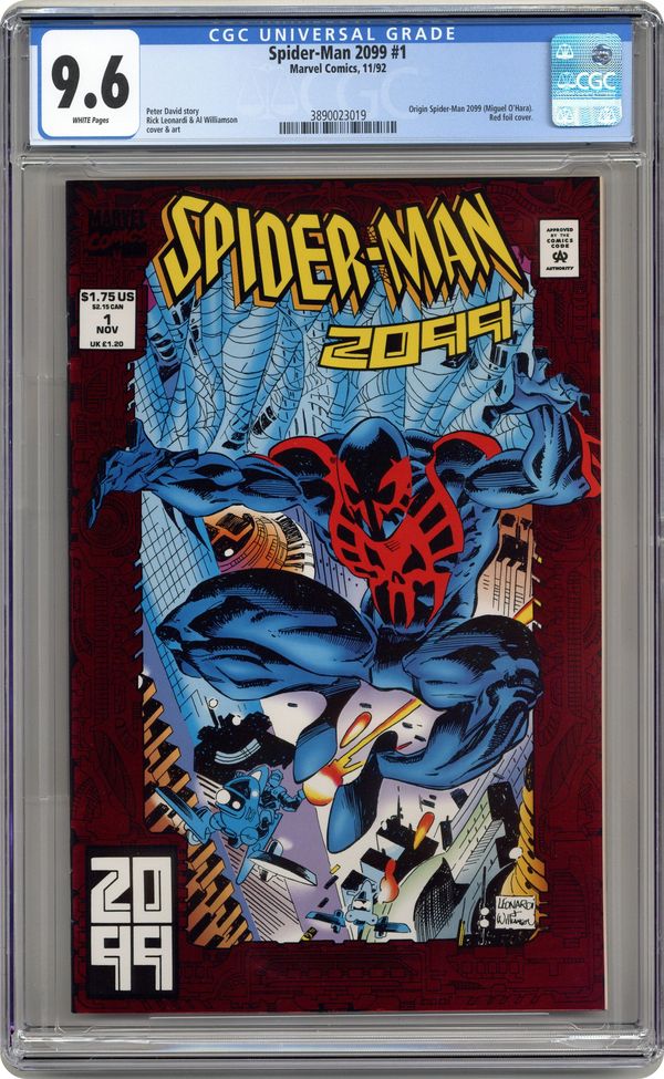 Direct Edition. Miguel O'Hara may be a genius, but he's not quick enough to keep from getting addicted to Rapture. So he experiments on himself, but the outcome isn't quite what he expected in this untitled tale. Script by Peter David, pencils by Rick Leonardi, inks by Al Williamson. Red foil stamped cover by Leonardi & Williamson. Cover price $1.75. Grade: CGC 9.6 explanation of grade Condition: Used (collectible)