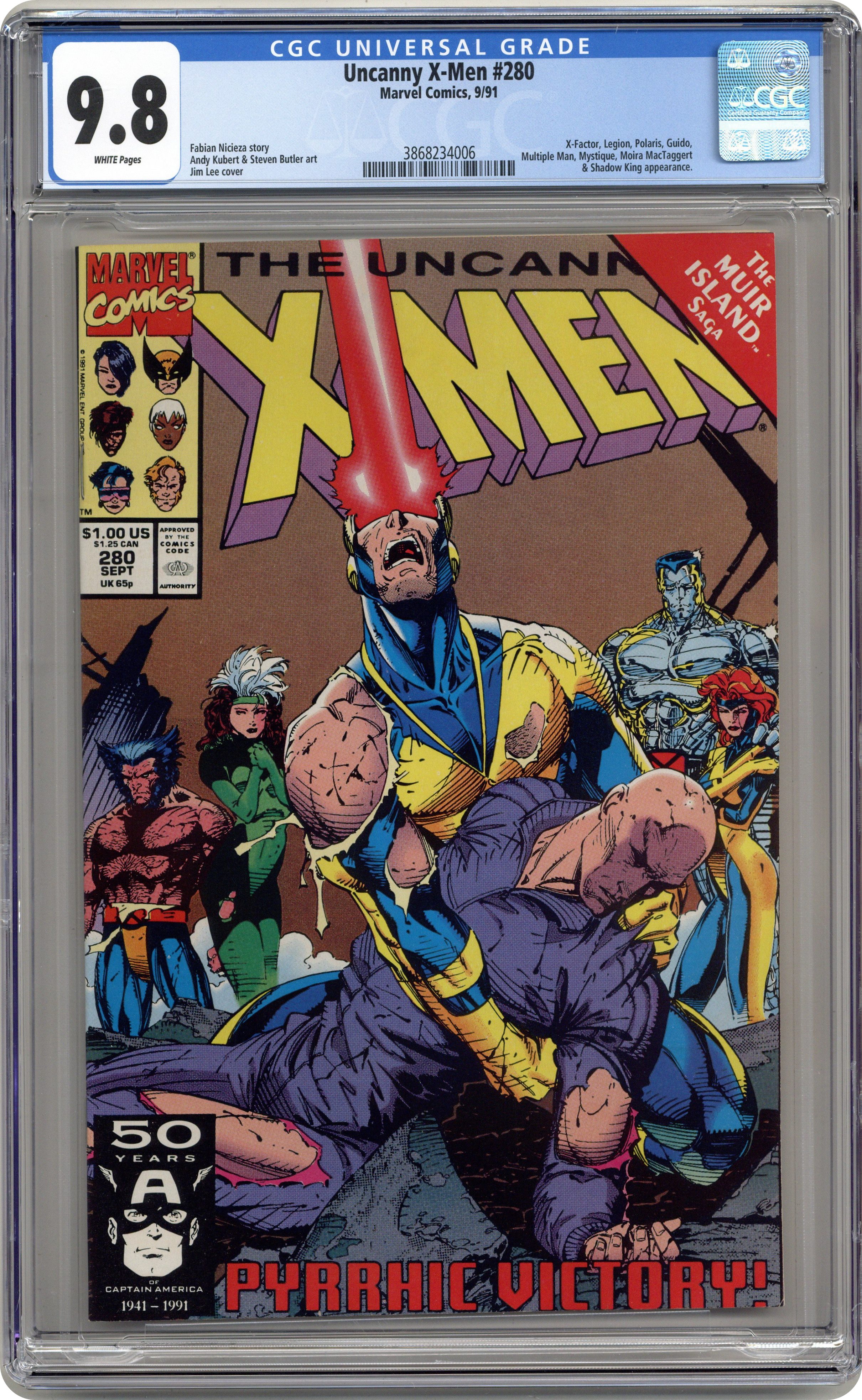 Muir Island Saga: Part 4 of 4. "One Step Back, Two Steps Forward!" Guest-starring X-Factor. Story by Fabian Nicieza. Art by Andy Kubert and Steven Butler. Story continued from X-Factor (Vol. 1) #69. The original X-Men unite with the new for the final showdown with the sinister Shadow King. This is one battle not everyone will be "walking" away from. NOTE: Don't miss X-Factor (Vol. 1) #70 for the Epilogue to this story and the start of a new era for the Children of the Atom! 36 pgs. Cover price $1.00. Grade: CGC 9.8 explanation of grade Condition: Used (collectible)