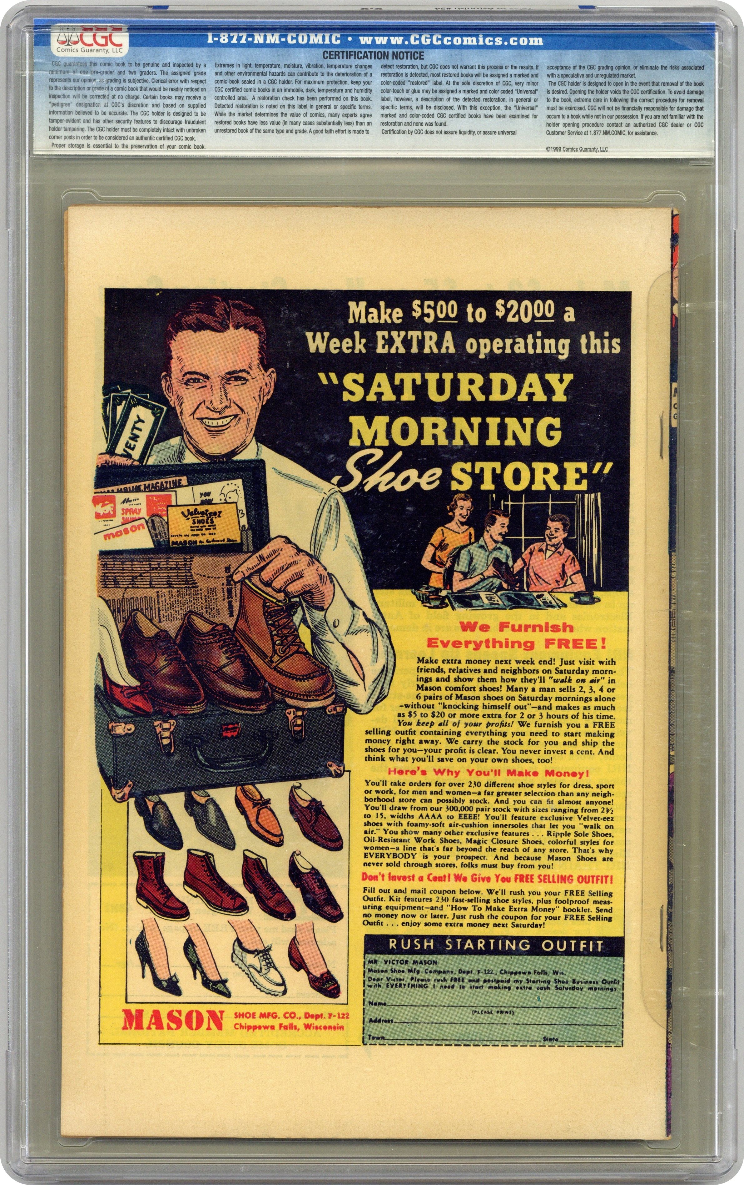 Ended Feb 6 2024 Winning Bid $227 Cover by Jack Kirby and Dick Ayers. No Place to Hide!, script by Stan Lee, art by Don Heck; Santo Rico has elected a communist president, El Toro; Giant-Man and the Wasp are sent to prove that the election was tampered with. The Treasure text story. There Were Five Frightened Men...!, script by Stan Lee and Larry Lieber, art by Larry Lieber and Paul Reinman; An art thief steals a painting of frightened men, only to be trapped in it as one of them. Ad for Fantastic Four #25 and the launch of Daredevil. Conquest!, script by Stan Lee and Larry Lieber, art by Larry Lieber and Sol Brodsky; A king invades another world to win glory, but the costs of occupation make him unpopular. 36 pgs., full color. $0.12. Cover price $0.12. Grade: CGC 9.0 explanation of grade Condition: Used (collectible)