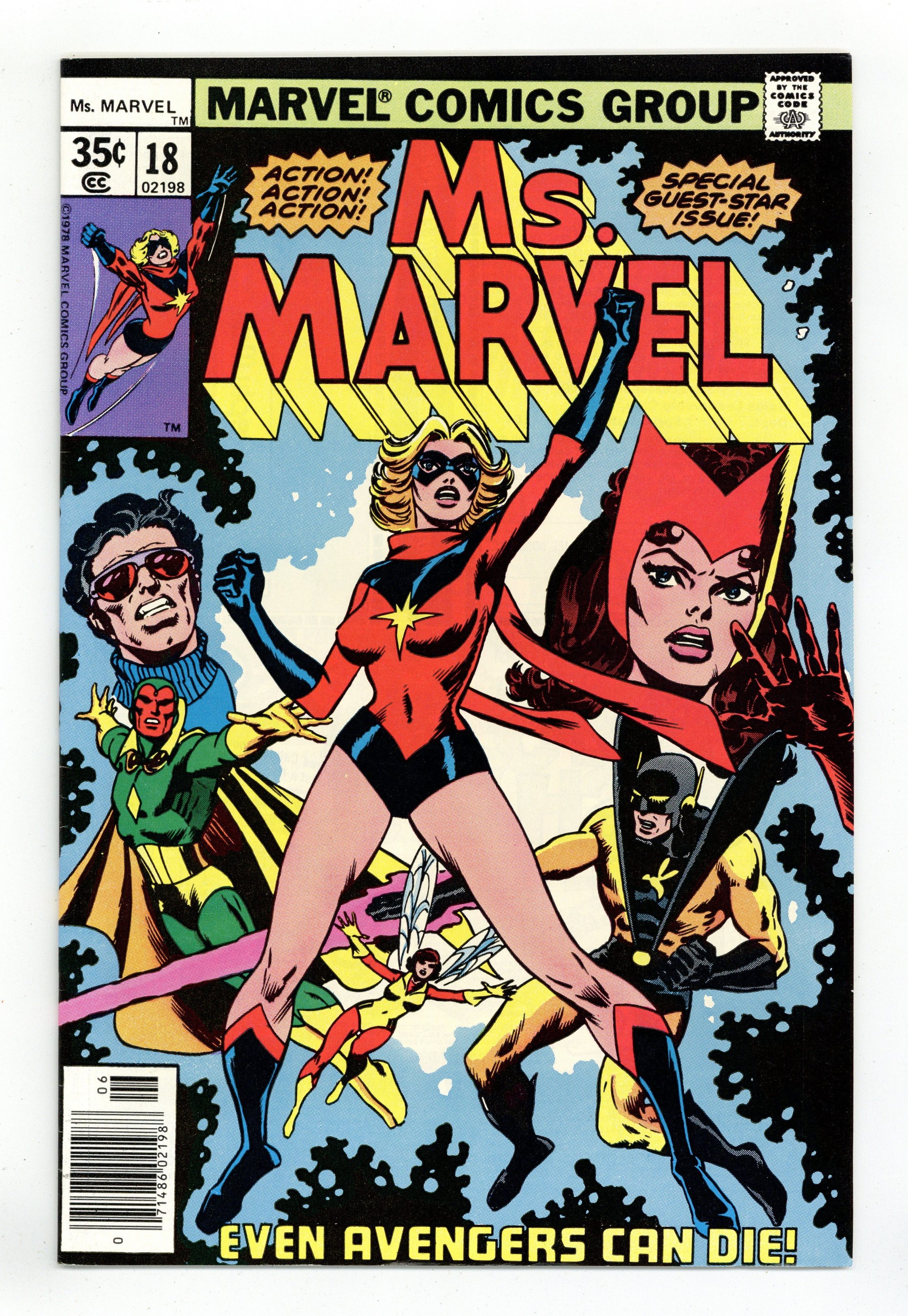 Dave Cockrum cover (pencils & inks). Chris Claremont script. Jim Mooney & Ricardo Villamonte art. "The St. Valentine's Day Avengers Massacre" Ms. Marvel and the Avengers (Wonder Man, Vision, Scarlet Witch, YellowJacket, & the Wasp) vs. Centurion and Mystique. First *full* appearance of X-Men Character, Mystique. Cover price $0.35. Grade: VF 8.0 explanation of grade Condition: Used (collectible)