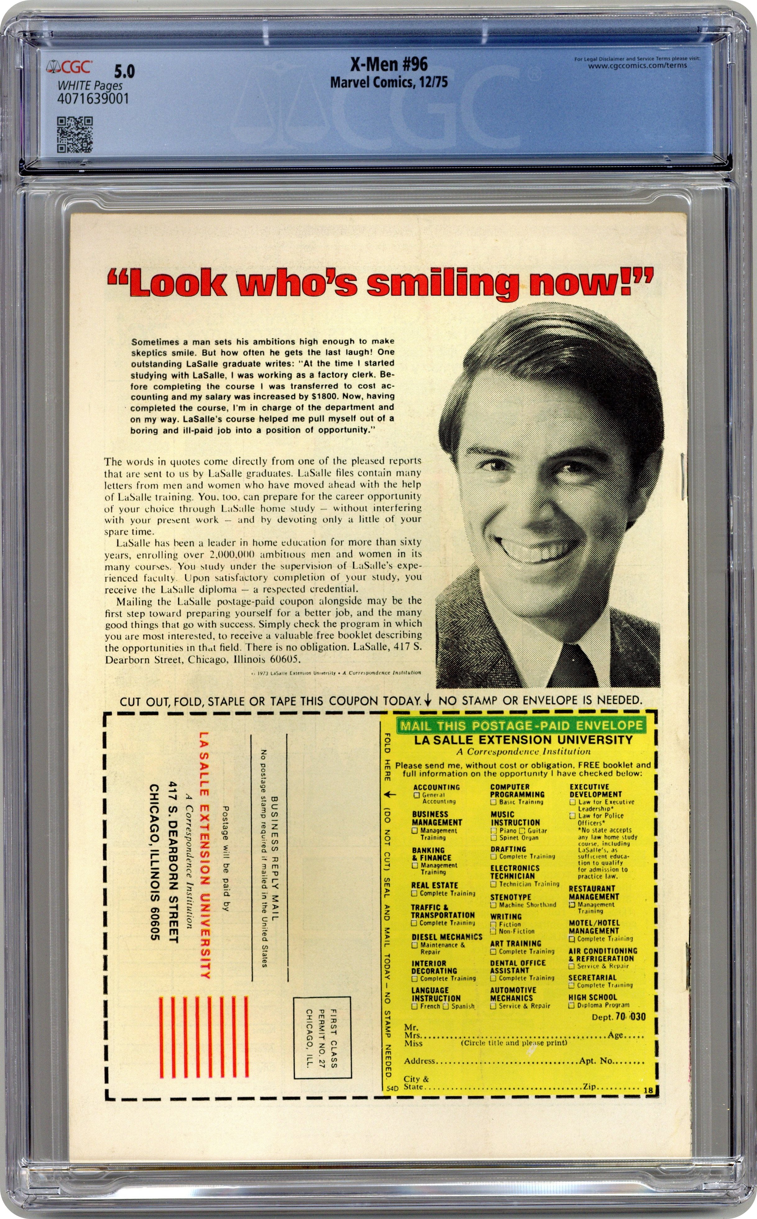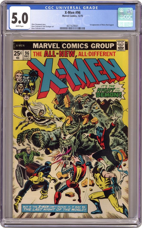 "Night of the Demon!" Story by Chris Claremont. Art by Dave Cockrum and Sam Grainger. Something sinister and demonic stalks the grounds at Xavier's School for the Gifted. The all new X-Men suddenly find themselves as the first and last line of defense against a denizen from the deepest bowels of Hell! 36 pgs. Cover price $0.25. Grade: CGC 5.0 explanation of grade Condition: Used (collectible)