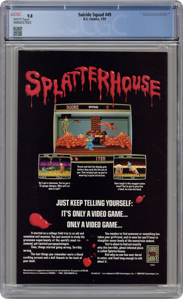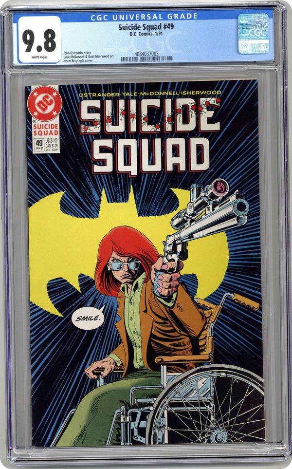 Cover by Norm Breyfogle. Out of Control, script by John Ostrander and Kim Yale, art by Luke McDonnell and Geof Isherwood; The Squad brings in the New Thinker and Amanda Waller makes a deal with Oracle. Deadshot, Captain Boomerang, Bronze Tiger, Cliff Carmichael/Thinker, The Atom II app. 36 pgs, full color. $1.00. Cover price $1.00. Grade: CGC 9.8 explanation of grade Condition: Used (collectible)