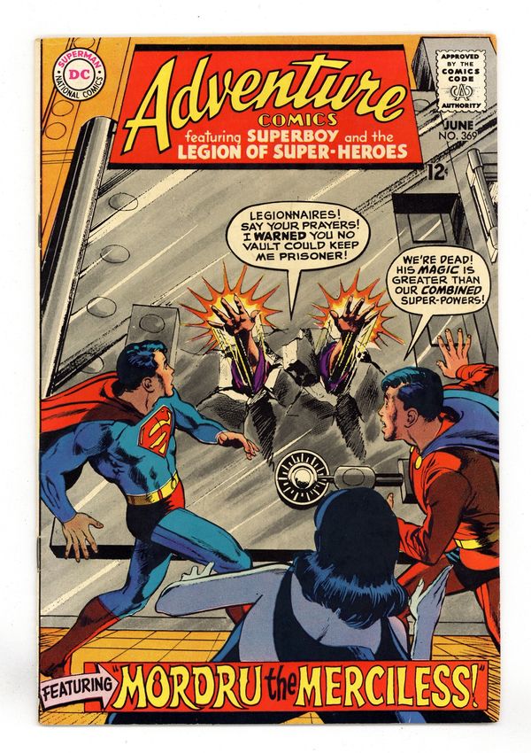Cover art by Neal Adams. Intro of Mordru in Mordru the Merciless!--Tales of the Legion of Super-Heroes, script by Jim Shooter, pencils by Jim Shooter (layouts only) and Curt Swan, inks by Curt Swan (p. 1) and Jack Abel; When Shadow Lass accidentally releases Mordru, four Legionnaires flee to Superboy's time to hide from him; Mordru tries to find the Legionnaires in Smallville, but they refuse to expose themselves; When a group of gangsters tries to take over Smallville, and the Legionnaires encourage the townspeople to defend themselves, the Legionnaires realize they need to return to the future to face Mordru. 36 Pages, Full Color. Cover price $0.12. Grade: FN+ 6.5 explanation of grade Condition: Used (collectible)