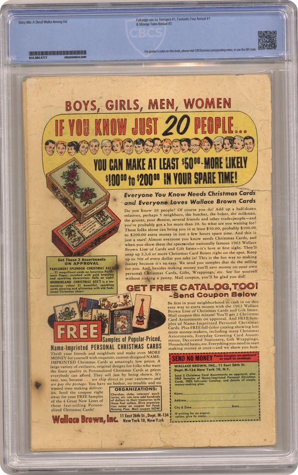 Ended Jan 22 2024 Winning Bid $73 Cover pencils by Jack Kirby, inks by Paul Reinman. Origin and first appearance of the Super Skrull in "A Skrull Walks Among Us!", script by Stan Lee, pencils by Jack Kirby, inks by Dick Ayers; The Skrull Emperor sends the Super-Skrull, a Skrull possessing all the powers of the Fantastic Four, to conquer Earth. In answer to a question from Paul B. Weinstein about who originated the corner cover symbol box, Stan Lee replied: "Steve Ditko dreamed up the idea, and we're sure glad he did!" 36 pgs. $0.12. Cover price $0.12. Grade: CBCS 1.8 explanation of grade Condition: Used (collectible)