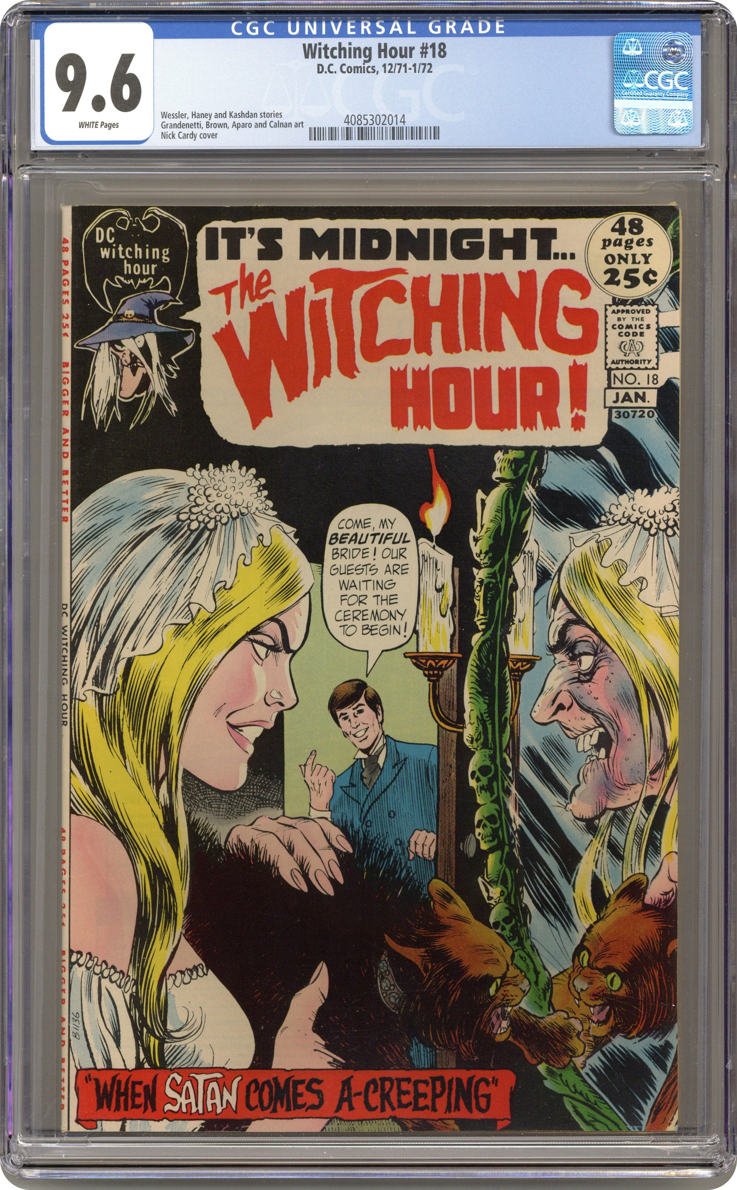 52-page giant. "The Worm That Turned Into Terror" (script by Darl Wessler, art by Jerry Grandenetti); "The Diggers!" (script by Bob Haney, pencils by Bob Brown, inks by Frank Giacoia); "When Satan Comes A-Creeping!" (script by George Kashdan, pencils by John Calnan, inks by Vince Colletta); and a one-page story, "Hypnotic Eye" (art by Jim Aparo). Reprint back-up stories: "The Face Behind the Mask" (script by Ed Herron, art by Jack Kirby) and "I Was a Prisoner of the Supernatural" (script by Fran Herron, art by Nick Cardy). 52 Pages, Full Color. Cover price $0.25. Grade: CGC 9.6 explanation of grade Condition: Used (collectible)