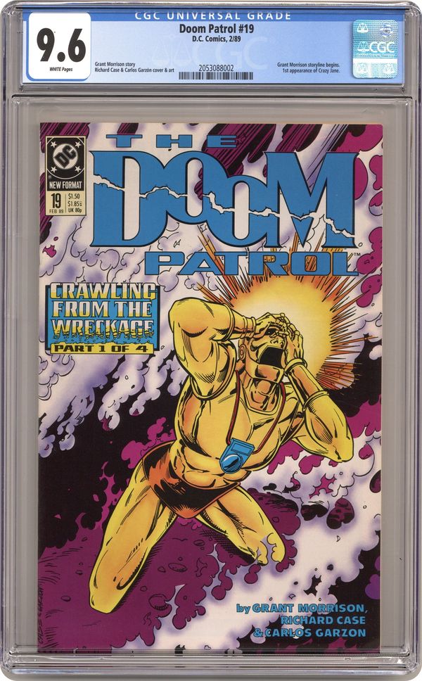 'Crawling From the Wreckage,' part 1 of 4. Now in the New Format, with a new creative team and a new direction as writer Grant Morrison and artists Richard Case and Carlos Garzon begin to rebuild the super-team shattered by recent events. Cover by Case and Garzon. New Format. Cover price $1.50. Grade: CGC 9.6 explanation of grade Condition: Used (collectible)