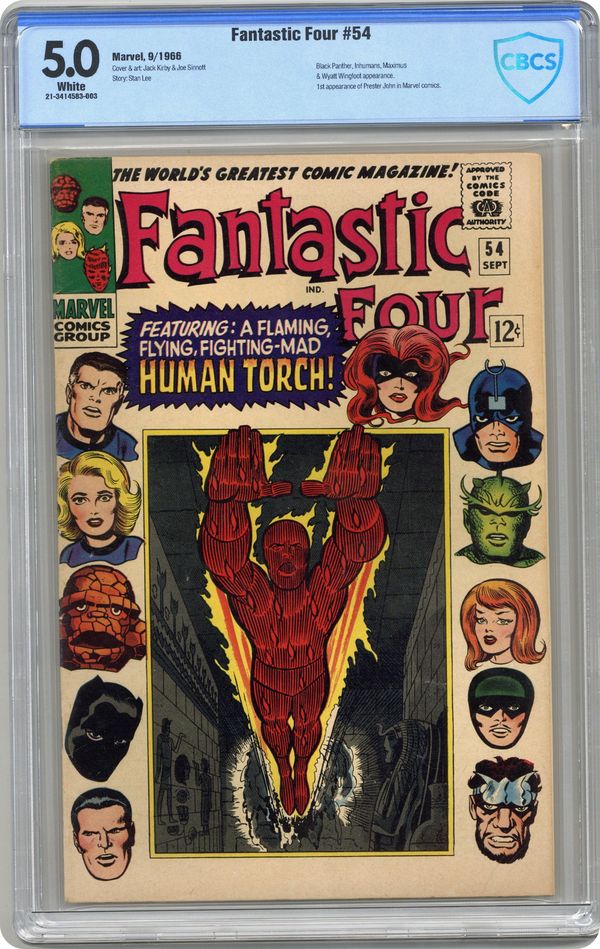 Ended Nov 16 2022 Winning Bid $52 Cover pencils by Jack Kirby, inks by Joe Sinnott. The Black Panther and the Inhumans guest star in Whosoever Finds the Evil Eye...!, script by Stan Lee, pencils by Jack Kirby, inks by Joe Sinnott; Johnny and Wyatt begin searching for the Inhumans and encounter Prester John and the Evil Eye. 36 pgs. $0.12. Cover price $0.12. Grade: CBCS 5.0 explanation of grade Condition: Used (collectible)
