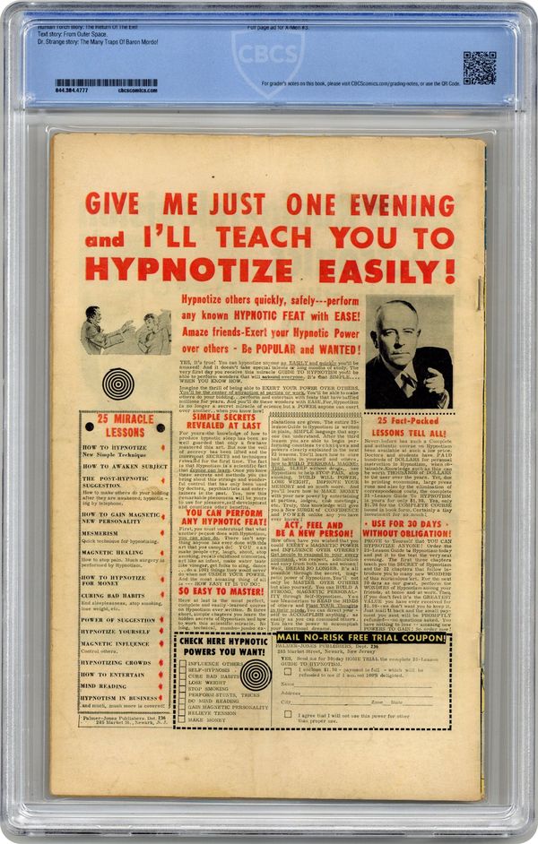Ended Nov 11 2022 Winning Bid $41 Cover pencils by Jack Kirby and Steve Ditko (Eel figure), inks by Sol Brodsky and Steve Ditko (Eel Figure). The Human Torch battles the Eel (from issue #112) in "The Return of the Eel!", script by Stan Lee (co-plot, script) and Dick Ayers (co-plot, un-credited), art by Dick Ayers; Having served his time, The Eel is released from jail, but Johnny's suspicious because he left prison wearing his Eel costume; Taking a security guard job at an aquarium, The Eel begins pulling crimes. "From Outer Space" text story. "The Many Traps of Baron Mordo!", script by Stan Lee and Steve Ditko (co-plot), art by Steve Ditko; Mordo places a spell over Strange's house that causes it to vanish to another dimension; Strange manages to track Mordo down using his ethereal form, but it becomes trapped in Mordo's lair; Mordo goes to see The Ancient One, claiming he's changed his way, just so he can attack him unawares. 36 pgs., full color. Cover price $0.12. Grade: CBCS 3.5 explanation of grade Condition: Used (collectible)