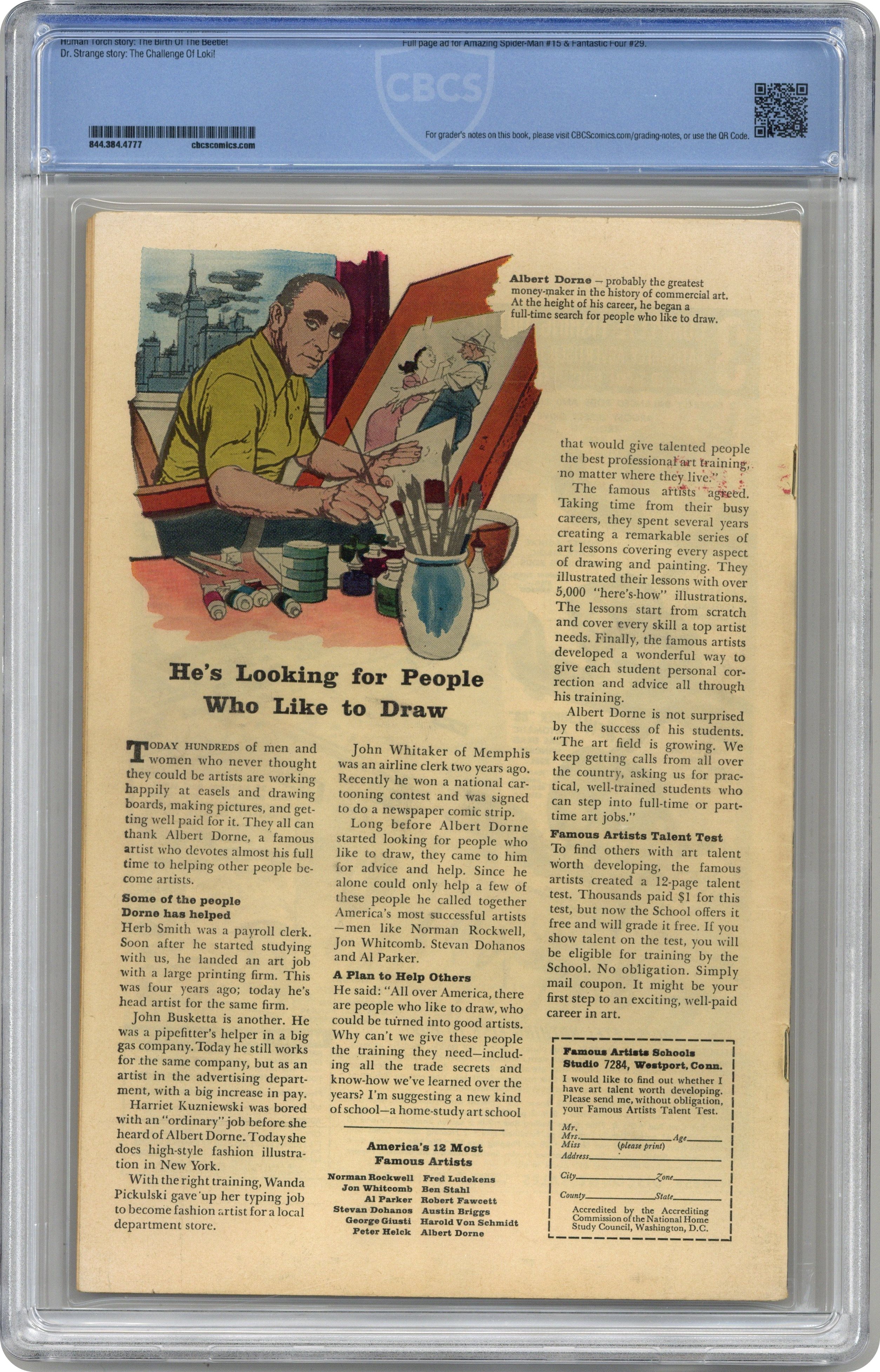 Cover pencils by Jack Kirby, inks by Sol Brodsky. First appearance of the Beetle in the Human Torch story, "The Birth of the Beetle!", script by Stan Lee, pencils by Carl Burgos, inks by Dick Ayers; Mechanic-inventor Abner Jenkins creates the identity of The Beetle; While taking the Fantasti-Car for a double-date, Johnny & Ben wind up being humiliated by The Beetle; Guest starring the Thing. "The Challenge of Loki!", script by Stan Lee and Steve Ditko (co-plot), pencils by Steve Ditko, inks by George Roussos (as George Bell); Dr. Strange practices the art of levitation; Meanwhile, in faraway Asgard, home of the Norse Gods, Loki, God of Mischief, plots as always; He contacts Doctor Strange and tries to convince him that he is a prisoner of Thor, who is evil and deceiving his father; Strange uses a spell to take Thor's hammer (first cross-over with Thor). (Reprinted in Giant-Size Marvel Triple Action # 2.) "Strange Mission" text story, art by Joe Maneely. 36 pgs., full color. Cover price $0.12. Grade: CBCS 6.5 explanation of grade Condition: Used (collectible)