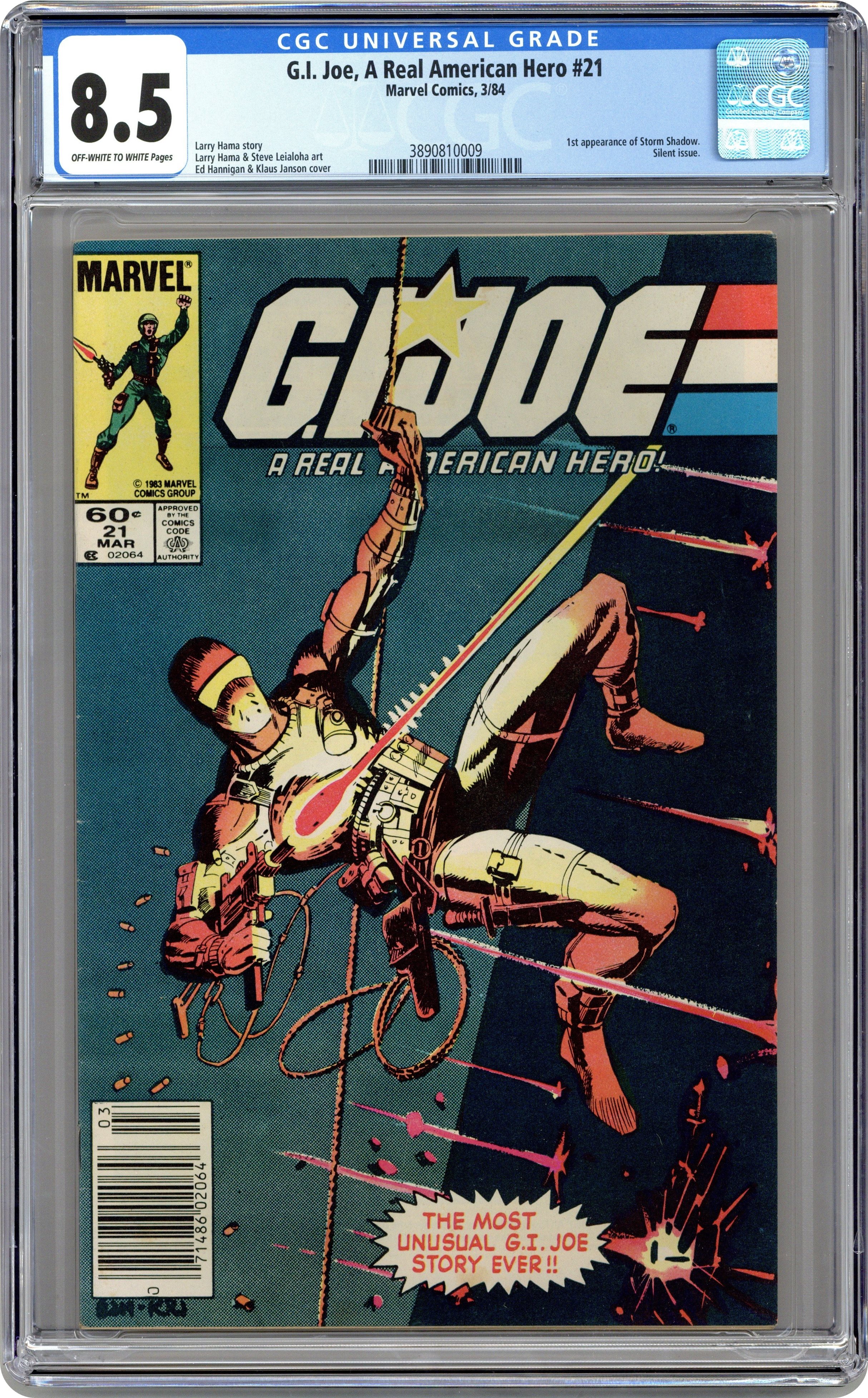 NOTE: This is the classic "Silent Issue" with the 1st appearance of Storm Shadow. Cover price $0.60. Grade: CGC 8.5 explanation of grade Condition: Used (collectible)If you add this item to your want list, we will email you when it becomes available.