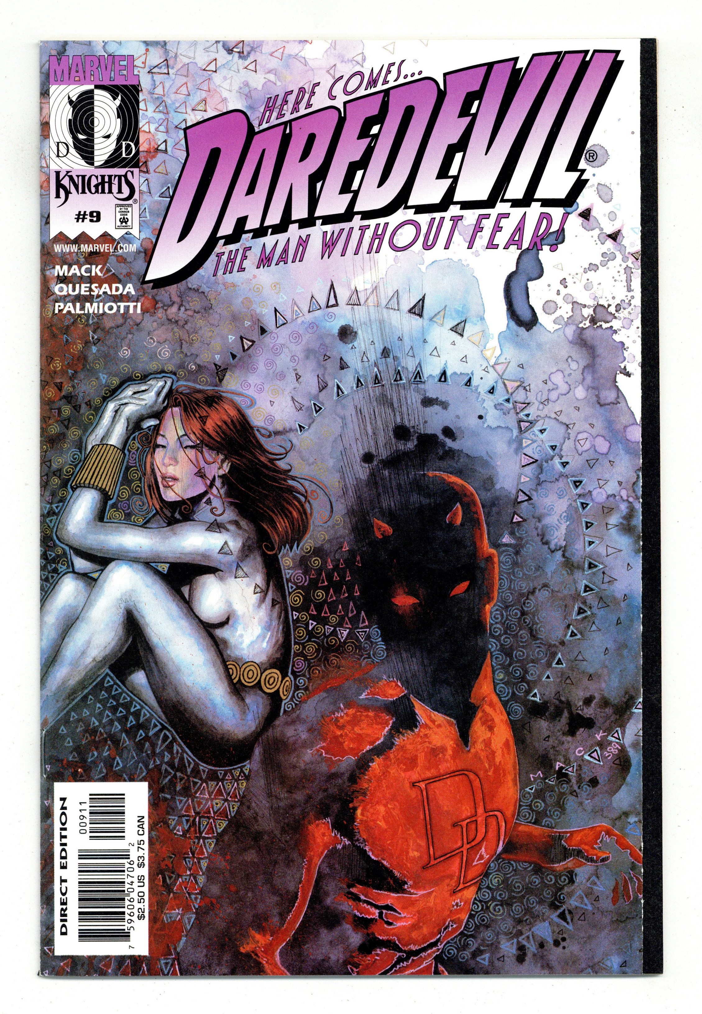 Direct Edition. Painted cover by David Mack. Joe Quesada and Jimmy Palmiotti welcome aboard new writer David Mack! As Matt Murdock attempts to rebuild his life from the ashes of the "Guardian Devil" story arc, old friends and new foes arrive! And when a mysterious man contacts Matt and claims to know the secret of Wilson Fisk's criminal empire, a new twist is added to the battle between Daredevil and his nemesis, the Kingpin!" Cover price $2.50. Grade: VF/NM 9.0 explanation of grade Condition: Used (collectible)