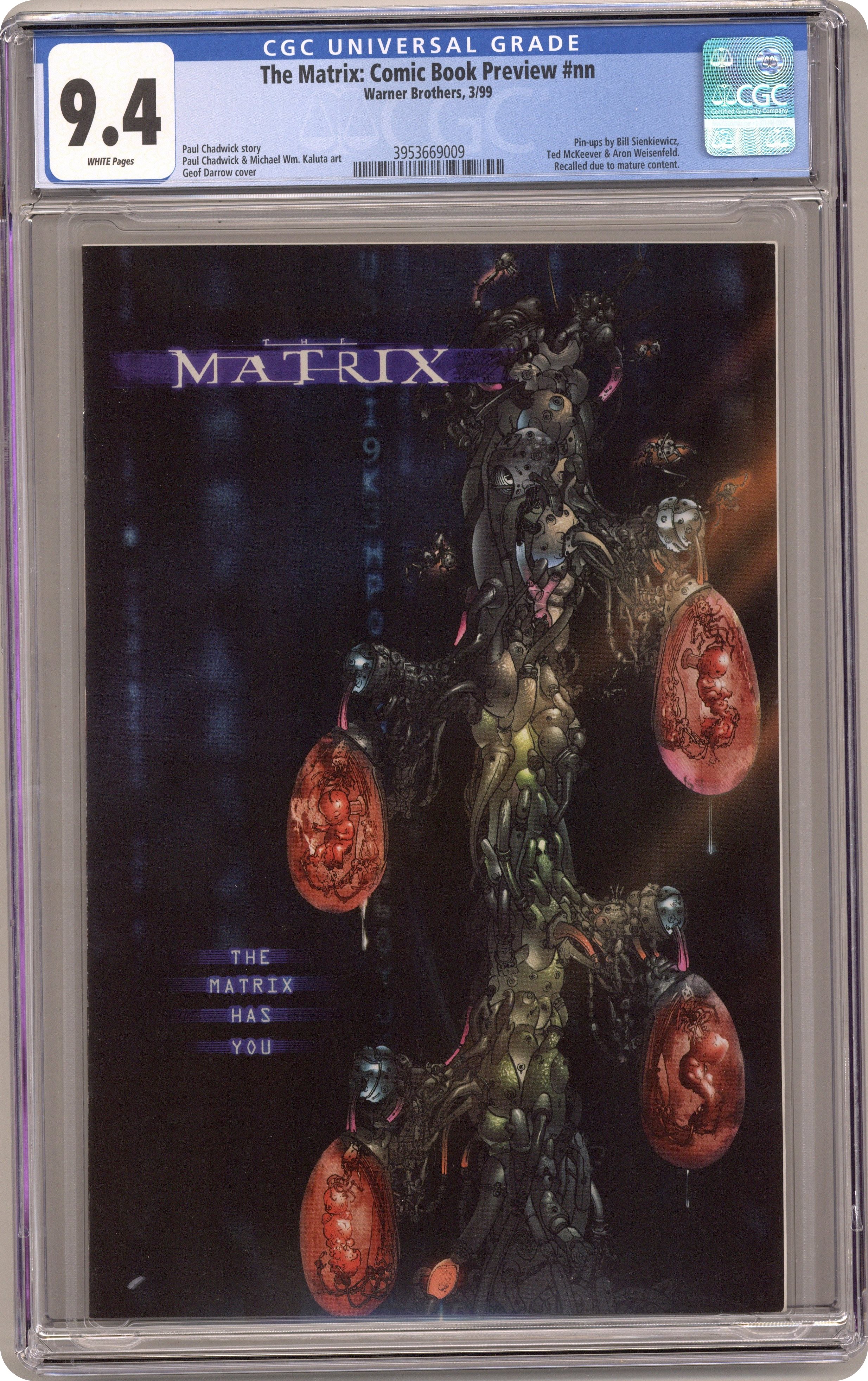 Published Mar 1999 by Warner Bros..Matrix Comic Book Preview (1999) 1 CGC 9.4