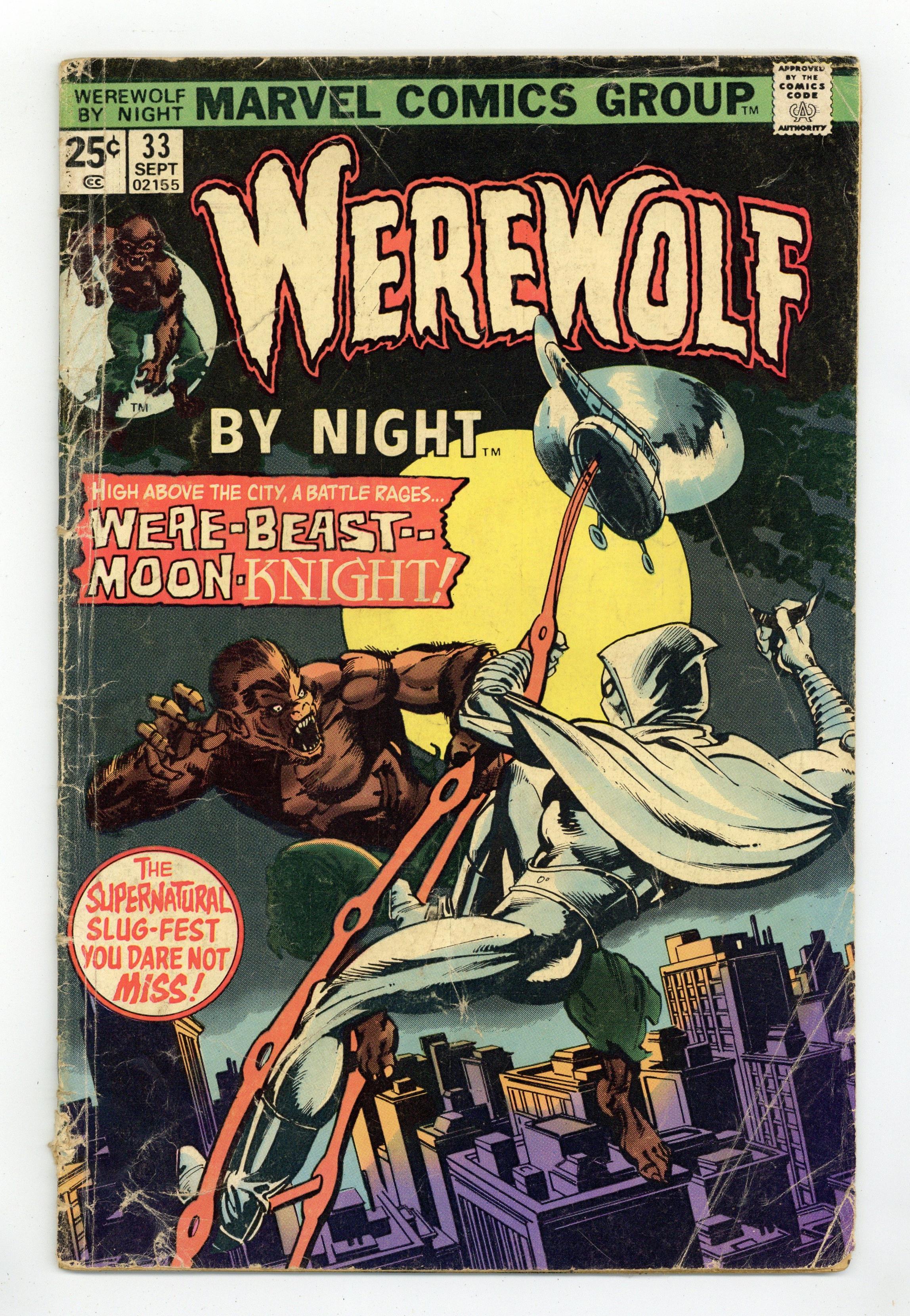 "Wolf-Beast vs. Moon Knight!" Written by Doug Moench. Art by Don Perlin and Howie Perlin. Cover by Gil Kane. The werewolf unleashed, more savage than ever before! A shocking twist as the beast faces the cages of the Committee. 32 pages, FC. NOTE: 2nd appearance of Moon Knight. Cover price $0.25. Grade: GD- 1.8 explanation of grade Condition: Used (collectible)