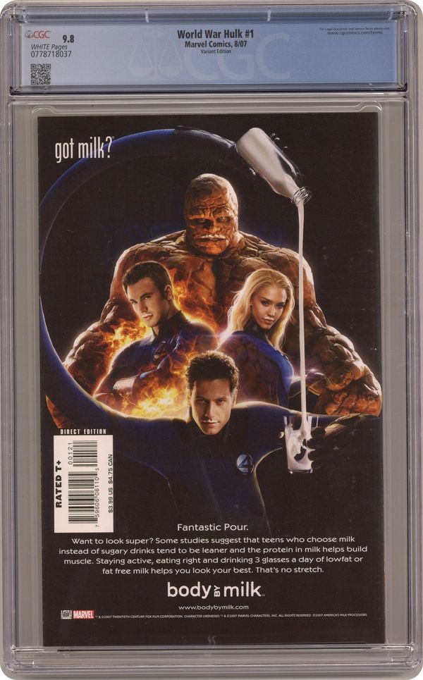 1:25 Variant Cover by JOHN ROMITA JR Written by GREG PAK Penciled by JOHN ROMITA JR. Cover by DAVID FINCH. Marvel's massive summer smashfest begins! Exiled by a group of Marvel 'heroes' to the savage alien planet of Sakaar, the Hulk raged, bled and conquered through the pages of last year's 'Planet Hulk' epic, rising from slave to gladiator to king. Now the Hulk returns to Earth to wreak his terrible vengeance on Iron Man, Reed Richards, Dr. Strange and Black Bolt -- and anyone else who gets in his way. Stronger than ever, accompanied by his monstrous Warbound gladiator allies, and possessed by the fiercest and purest rage imaginable, the Hulk may just tear this stupid planet in half. The epic story of anger unbound begins with this special double-sized issue written by 'Planet Hulk' scribe Greg Pak and penciled by the legendary John Romita, Jr. 48 PGS./Rated T+ ...$3.99 Cover price $3.99. Grade: CGC 9.8 explanation of grade Condition: Used (collectible)
