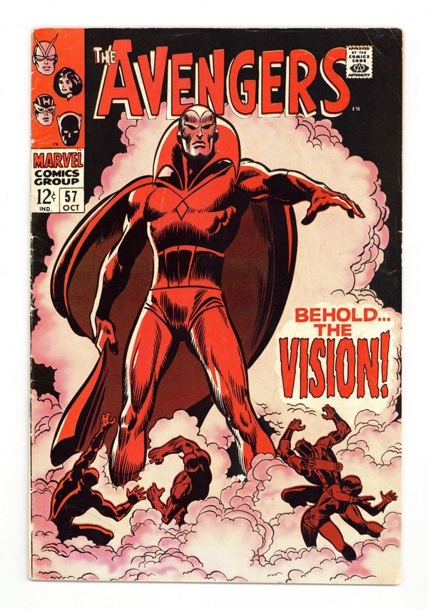 Ended Jun 8 2023 Winning Bid $220 First appearance of the Vision in "Behold...the Vision!" Part 1 of 2. Script by Roy Thomas. Pencils by John Buscema. Inks by George Klein. Cover by John Buscema and George Klein. One of the landmark issues of the silver age! On a rainy night in Manhattan, a strange being enters Janet Van Dyne's apartment and suddenly collapses! The Wasp quickly calls Goliath; and they take the red-hued stranger to Avengers Mansion for examination! Once their Hank Pym discovers that the Vision is a human being constructed of synthetic materials - a synthezoid in fact! When the Vision wakes up, he remembers that Ultron sent him to destroy the Avengers! But now the Vision wants to flip the script on his creator! So he leads Earth's Mightiest Heroes back to Ultron's underground lair! Could this be a trap? Either way Ultron-5 is waiting! And the battle is coming! Will the Vision prove worthy of the Avengers' trust? Cameo appearance by the Black Widow. Avengers Lineup: Black Panther, Goliath, Hawkeye, and the Wasp. (Notes: The synthezoid avenger is not to be confused with the golden age Vision (aka Aarkus). Marie Severin contributed pencils to page 3 - the second to last panel. The letters page includes a letter from comics writer Tony Isabella. This issue was reprinted in Marvel Treasury Edition (1974) #7 and also in Marvel Super Action #18.) 36 pages. Cover price $0.12. Grade: VG+ 4.5 explanation of grade Condition: Used (collectible)