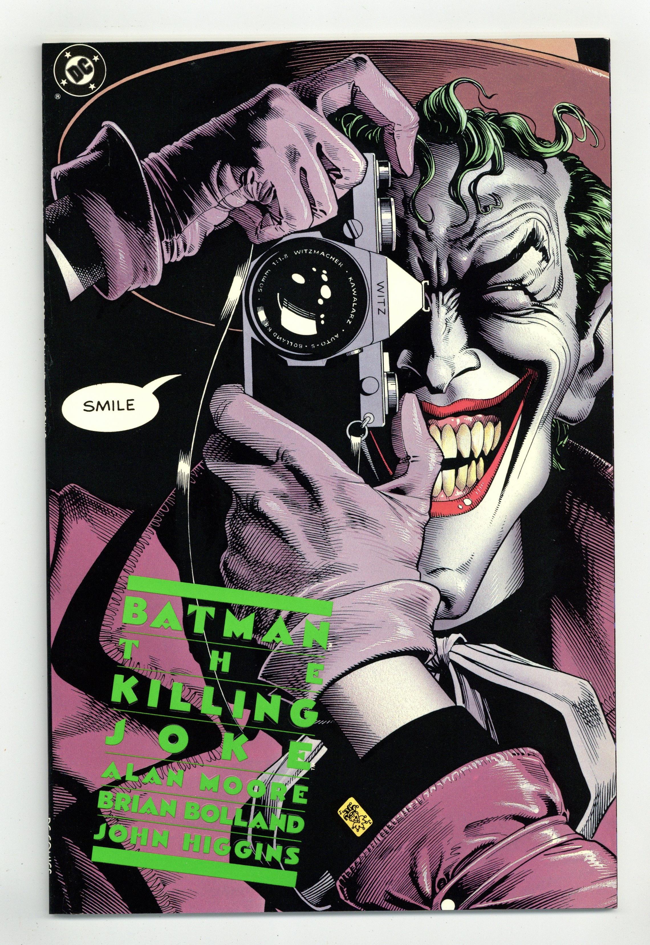 1st Printing. Batman matches wits with his arch nemesis The Joker in this critically acclaimed, prestige format one-shot. He also laughs at one of his jokes. The book is infamous for the scene in which The Joker shoots and cripples Barbara Gordon, effectively ending her crime fighting career as Batgirl. Written by Alan Moore, with art by Brian Bolland. 52 pages, full color. NOTE: 1st Printing, title is printed in lime green embossed ink. All others are later printings. Cover price $3.50. Grade: VF- 7.5 explanation of grade Condition: Used (collectible)