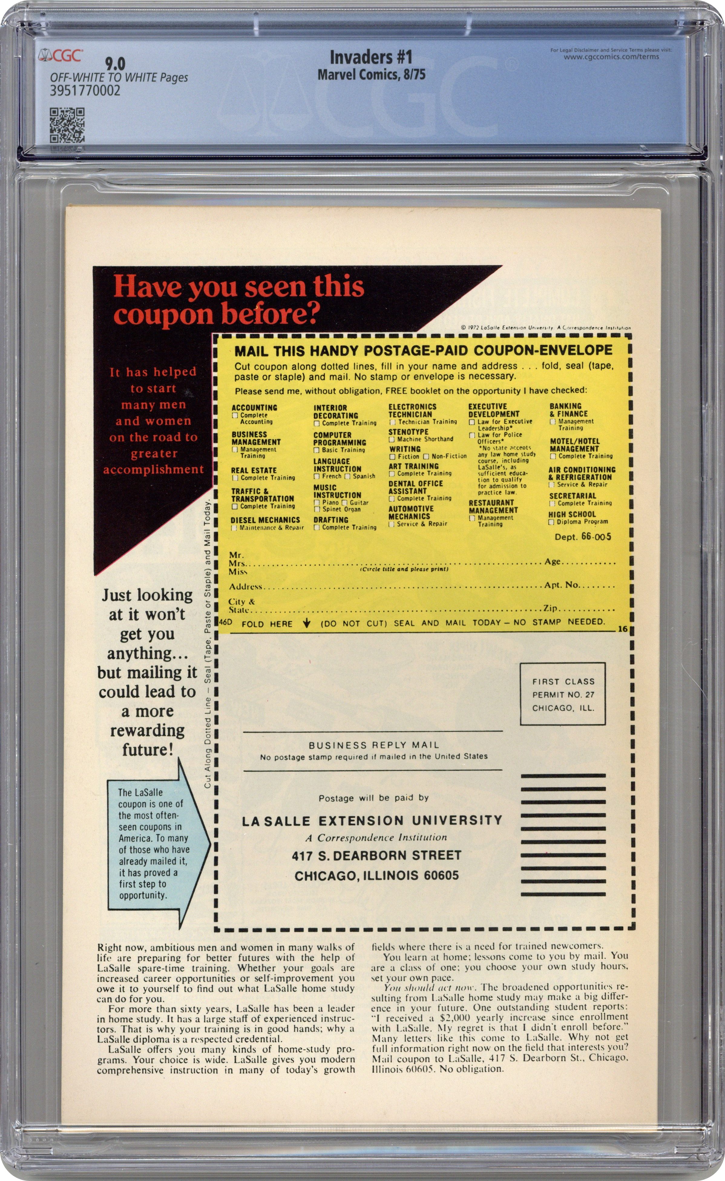 Invaders (1975 Marvel 1st Series) 1 CGC 9.0