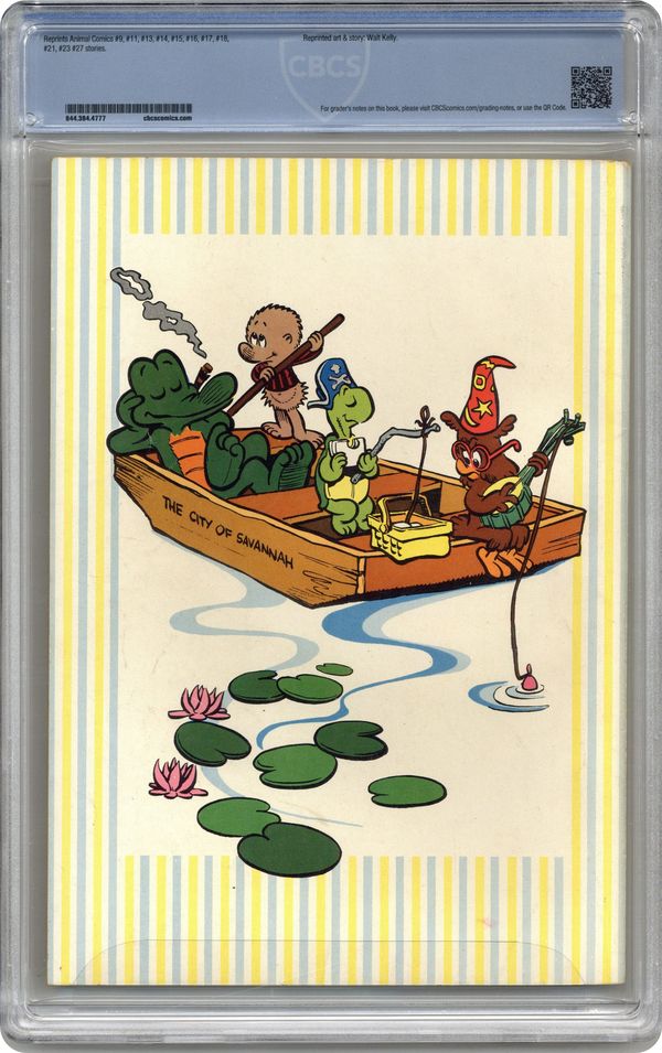 Ended Feb 7 2023 Winning Bid $36 Regular 25 cent cover price edition. Walt Kelly Pogo reprints from Animal Comics: "Albert the Alligator," "Albert the Whaler," "Albert and Pogo and the Fountain of Youth," "Albert and the Noah Count Ark," "Albert and Pogo" (six stories), and "Ol' Albert is Really a Deer." 100 Pages, Full Color. Cover price $0.25. Grade: CBCS 5.5 explanation of grade Condition: Used (collectible)
