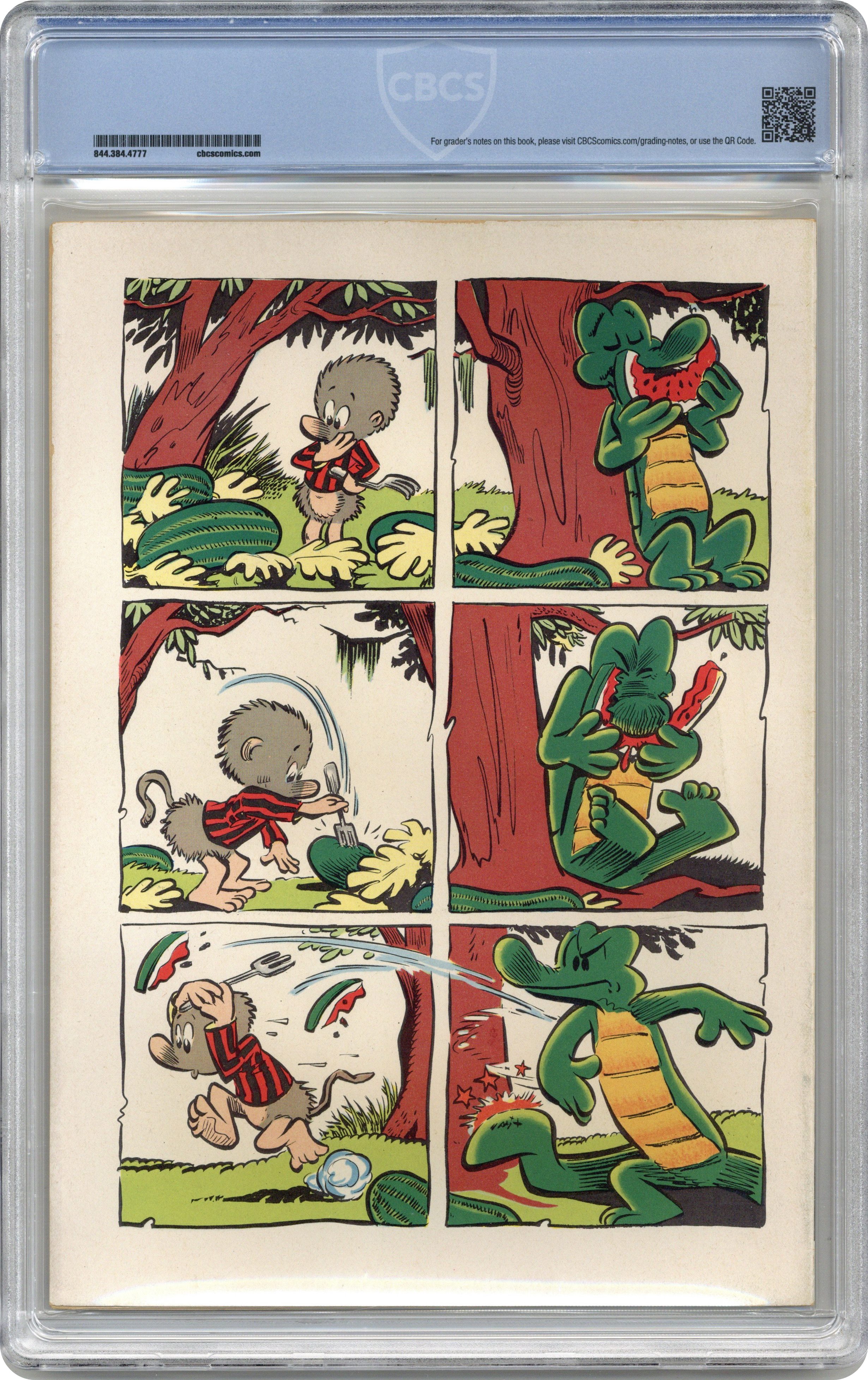 Ended Apr 5 2023 Winning Bid $48 Cover art by Walt Kelly. Scripts and art by Walt Kelly. Untitled one-page story; Churchy painting a portrait of Pogo. "Cinderella and the Three Bears"; Albert telling the fairy tale of Cinderola to Pogo and the bug children, with Pogo acting as Cinderola, the three bears as Cinderola's stepmother and stepsisters, Churchy as the King's page, Howland as Cinderola's furry godmother, and Albert as the prince. "Berried Treasure"; The three children disguised as old men, try tricking a blueberry pie off Albert. "The Boastful Bird" text story. "The Big Rock Candy Quarry"; Rackety Coon Chile and Pogo find sheet music for the song "The Big Rock Candy Mountain" in Albert's trunk, and Albert sets out to find the mountain in order to become a millionaire; Seminole Sam sells him a pile of garbage, claiming it to be rock candy in disguise. Untitled one-page story; Churchy catches the frog's fishing hook. Untitled one-page story; Pogo mistakes Albert's tail for a water melon. 36 pages, full color. Cover price $0.10. Grade: CBCS 7.0 explanation of grade Condition: Used (collectible)