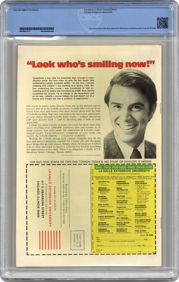 Ended Dec 19 2023 Winning Bid $56 "Night of the Demon!" Story by Chris Claremont. Art by Dave Cockrum and Sam Grainger. Something sinister and demonic stalks the grounds at Xavier's School for the Gifted. The all new X-Men suddenly find themselves as the first and last line of defense against a denizen from the deepest bowels of Hell! 36 pgs. Cover price $0.25. Grade: CBCS 6.0 explanation of grade Condition: Used (collectible)
