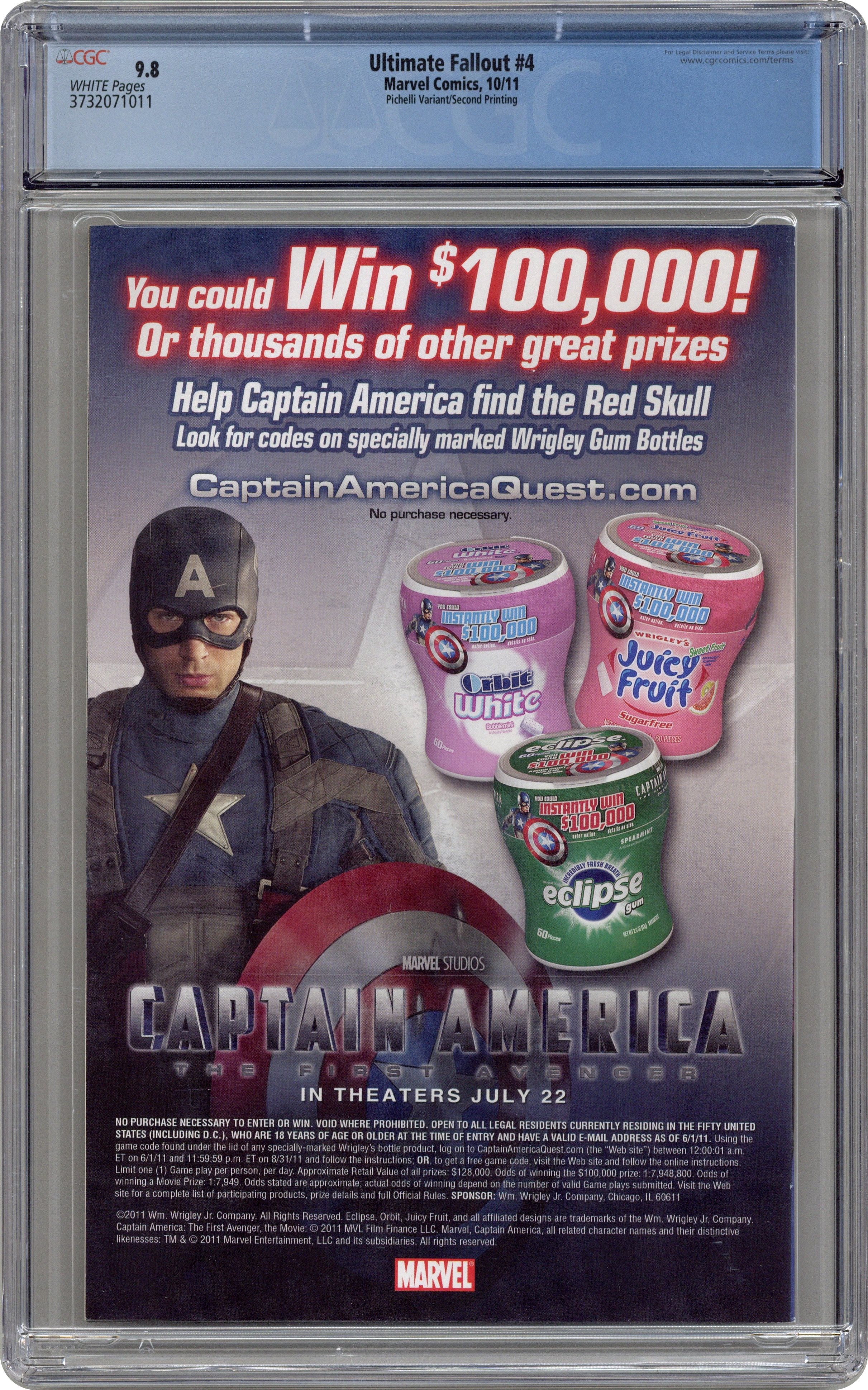 Ultimate Fallout (2011 Marvel) 4D CGC 9.8 Pichelli Variant 2nd Printing