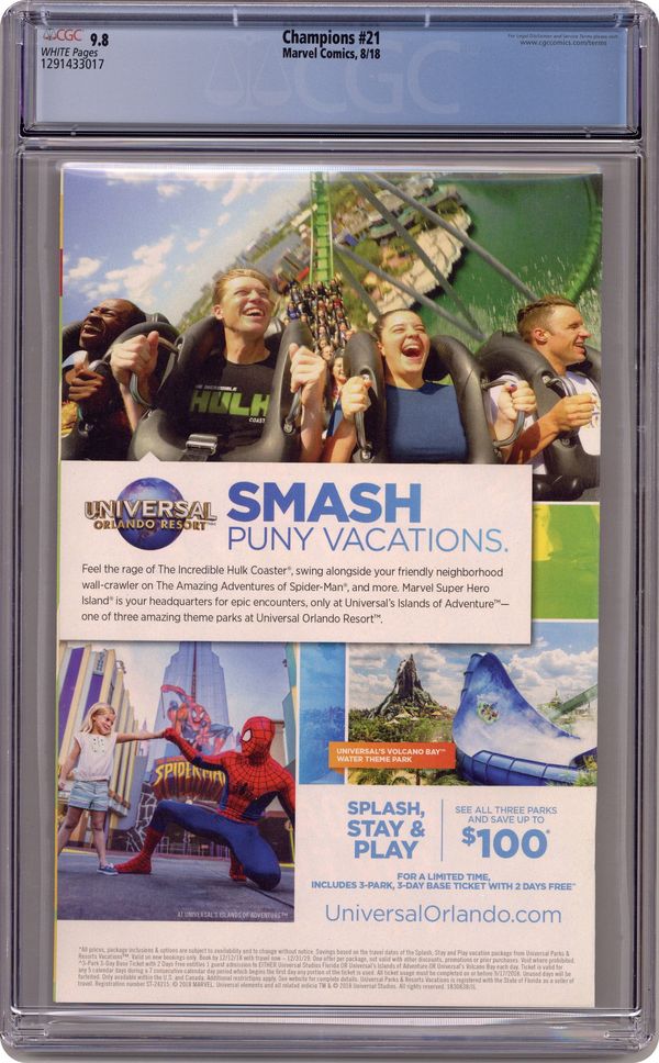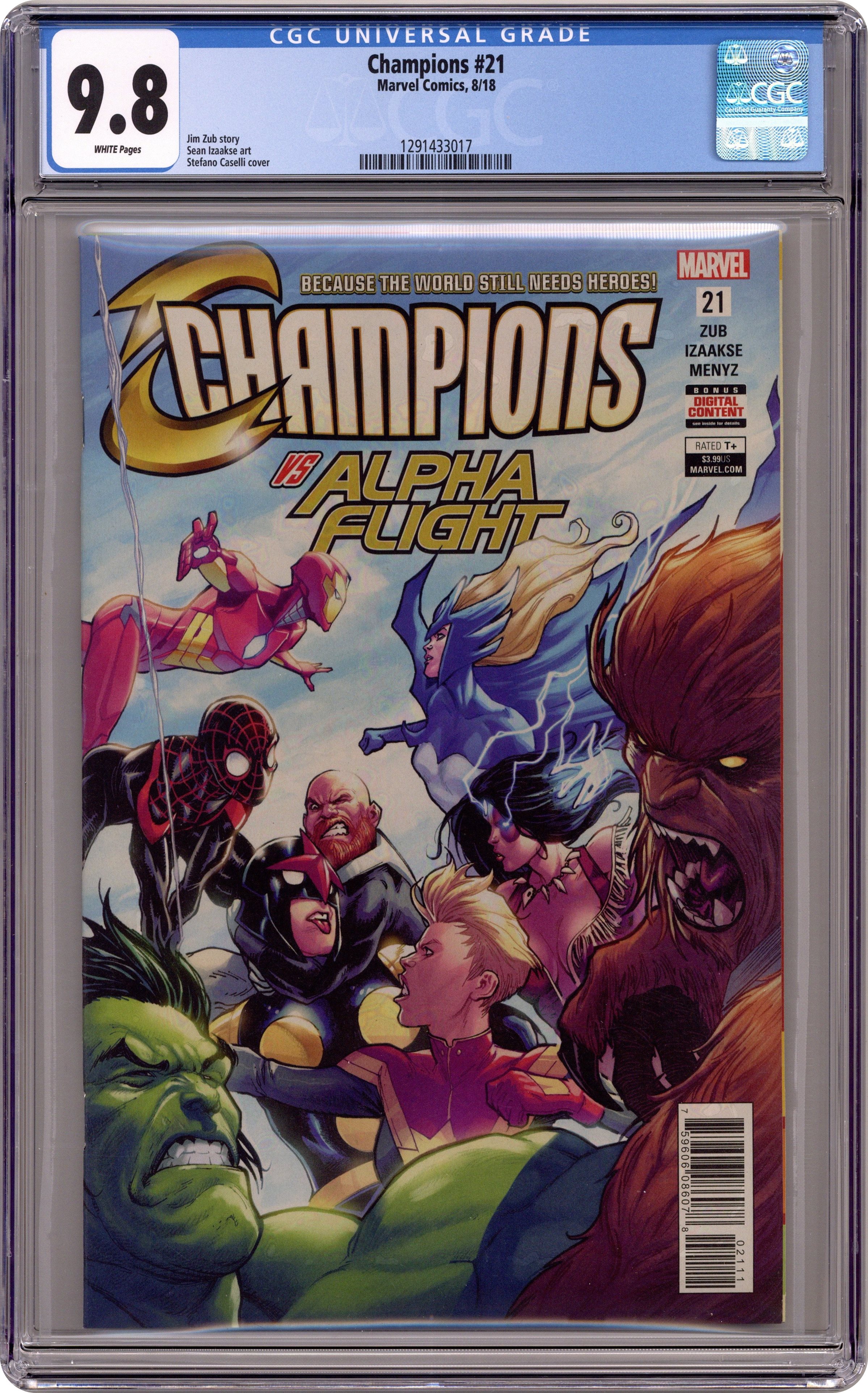 Written by Jim Zub. Art by Sean Izaakse. Cover by Stefano Caselli. The Champions vs. Alpha Flight? Ms. Marvel vs. Captain Marvel? 'Nuff said! Saving the north just got a whole lot more complicated... Plus…Nova no more?! 28 pages, full color. Rated T+ Cover price $3.99. Grade: CGC 9.8 explanation of grade Condition: Used (collectible)