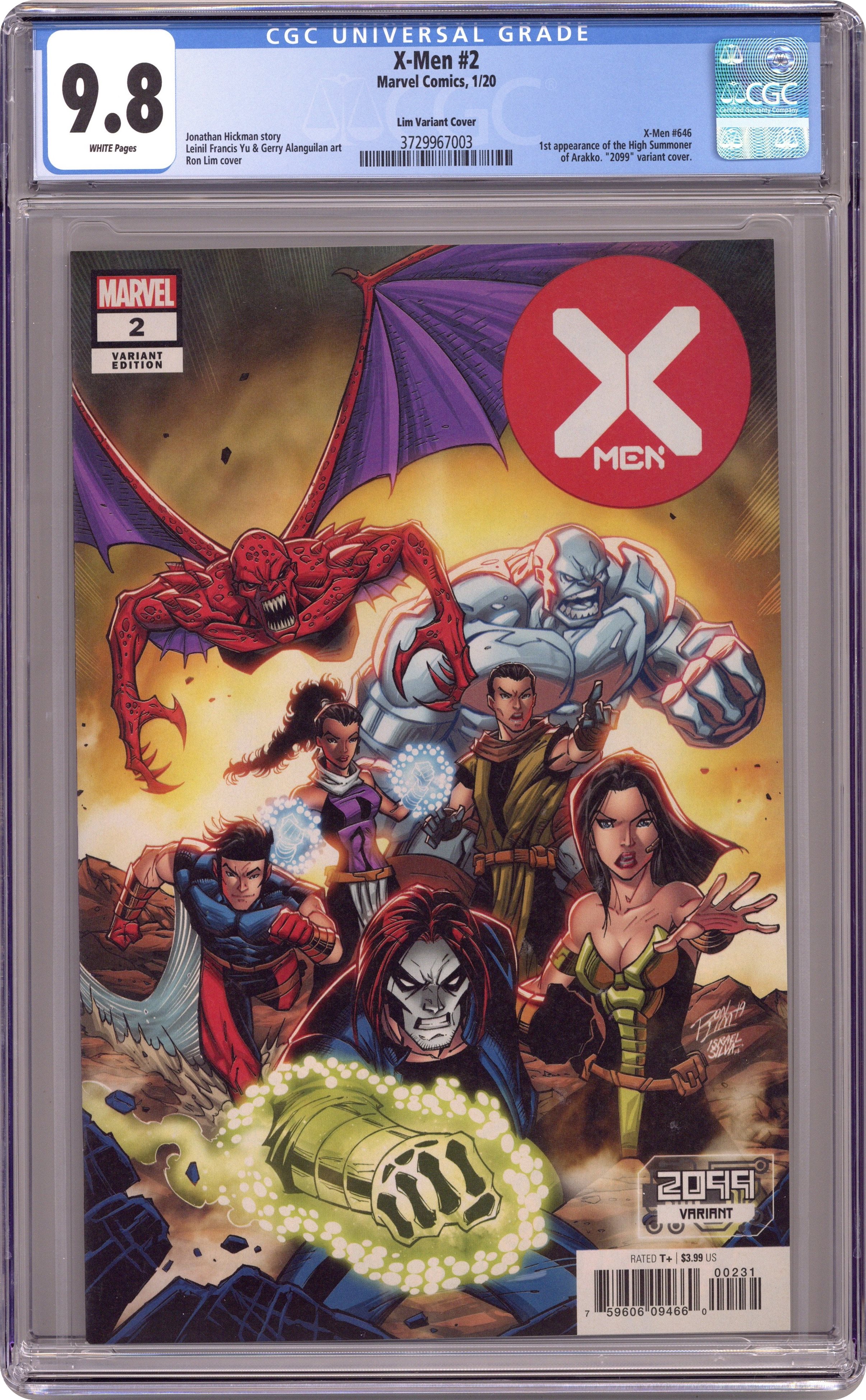 Written by Jonathan Hickman. Art by Leinil Francis Yu. Cover by Ron Lim. When an island full of unspeakable horrors appears on the horizon, the X-Men have their work cut out for themselves keeping Krakoa safe! 32 pages, full color. Rated T+ Cover price $3.99. Grade: CGC 9.8 explanation of grade Condition: Used (collectible)