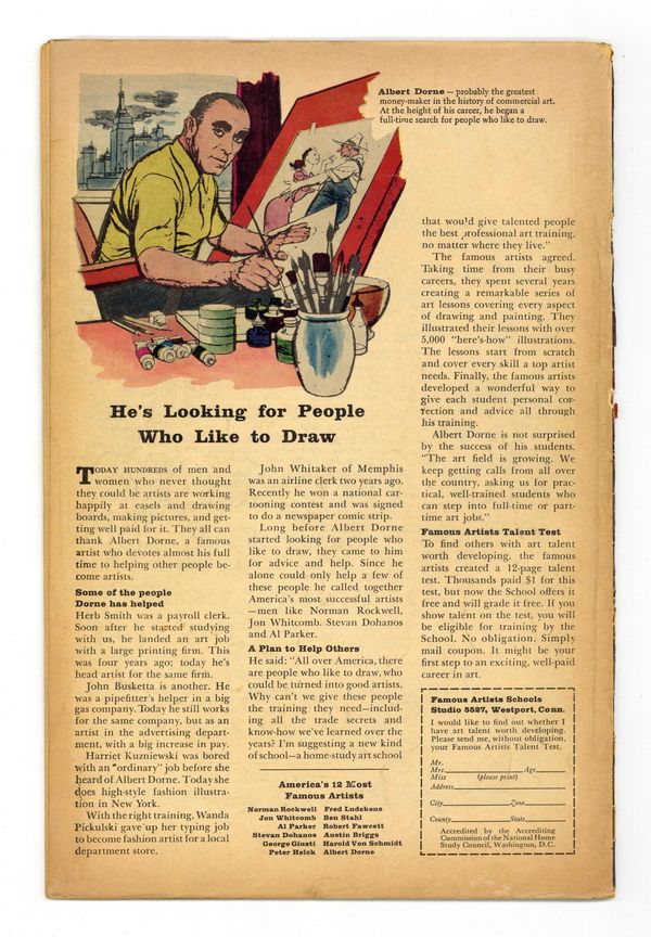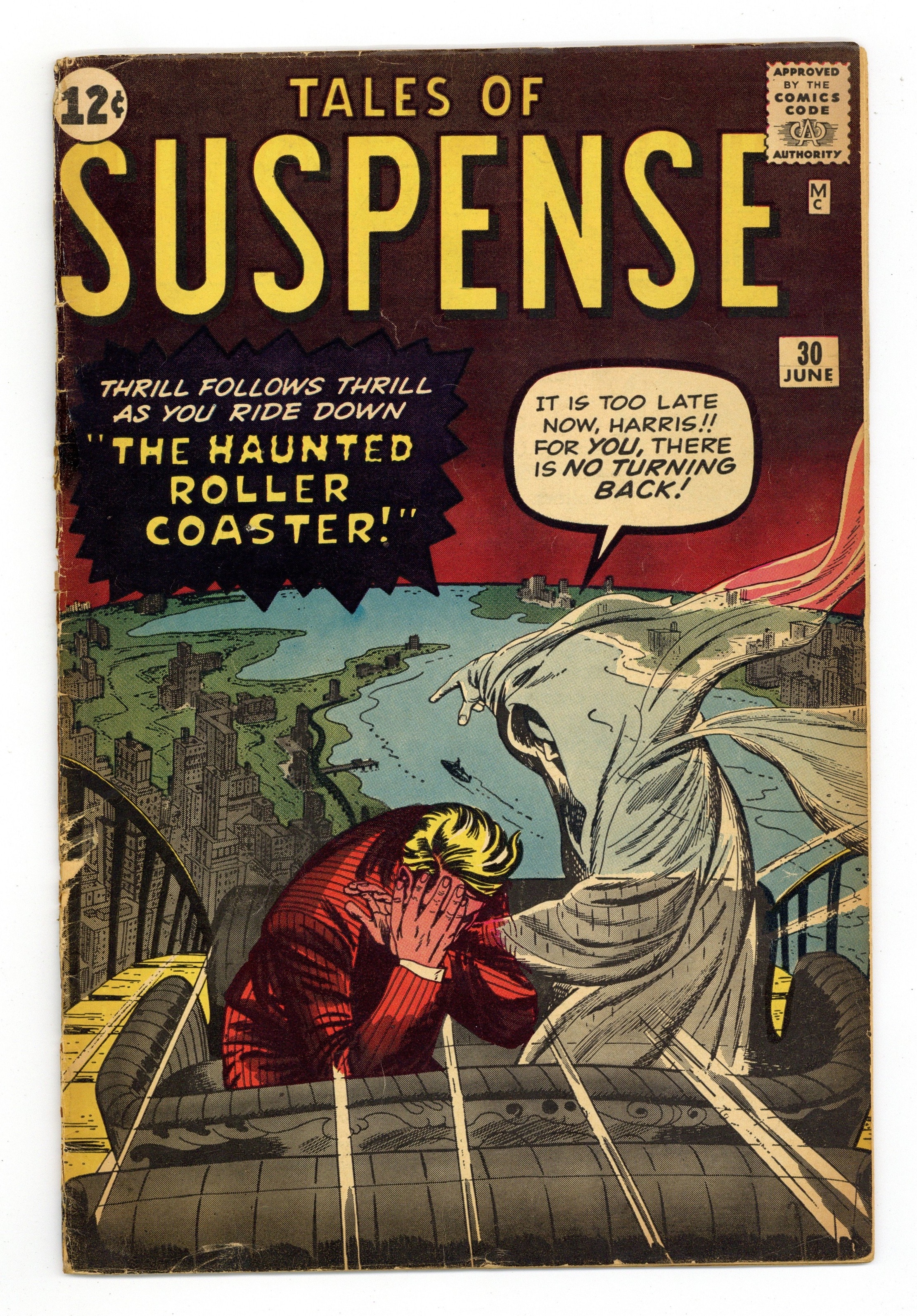 Cover pencils by Jack Kirby, inks by Dick Ayers. "The Ghost Rode a Roller Coaster!", pencils by Jack Kirby, inks by Dick Ayers; An amusement park owner hires an engineer to design frightening rides and works him to death; The engineer's ghost returns and takes the park owner on a deadly roller coaster ride. "Trouble Bubble" text story, art by Joe Maneely. "The Creature from Krangro," pencils by Jack Kirby, inks by Dick Ayers; An alien commander is sent to Earth to prove his courage by capturing three humans, but he accidentally takes statues of George Washington, Abraham Lincoln and Teddy Roosevelt. "The Man Who Couldn't Grow Old!", art by Don Heck; An evil duke seeks the secret of eternal youth, and an old man in Egypt turns him into a mummy. "Inside the Fallout Shelter!", script by Stan Lee, art by Steve Ditko; A selfish man builds a bomb shelter only for himself, but when a false alarm panics him he finds himself locked in for a month without a can opener to open his food. 36 pages, full color. Cover price $0.12. Grade: GD+ 2.5 explanation of grade Condition: Used (collectible)