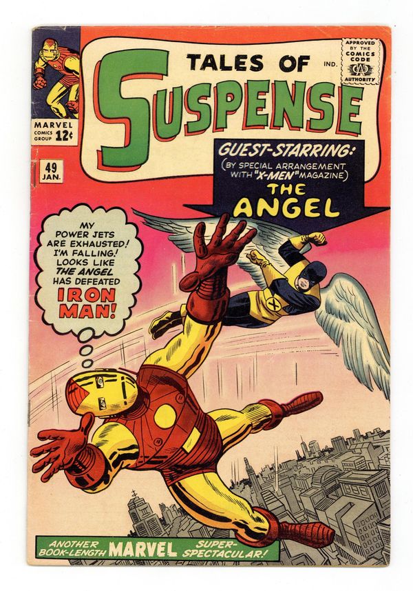 Cover pencils by Jack Kirby, inks by Steve Ditko. First X-Men crossover (same date as X-Men #3 - January, 1964), plus first Avengers crossover (without Captain America) in the Iron Man story, "The New Iron Man Meets the Angel!", script by Stan Lee, pencils by Steve Ditko, inks by Paul Reinman; The Angel is affected by an atomic test done at one of Stark's weapons plants. His personality is altered and now he wants to join the Evil Mutants; The X-Men call the Avengers for help but only Iron Man is available. "Strange Encounter," art by Joe Maneely. "The Saga of the Sneepers!", script by Stan Lee (plot) and Larry Lieber (script), pencils by Larry Lieber, inks by George Roussos (as G. Bell); An alien race watches humanity's progress, worried that they will one day overtake them; With the invention of the atomic bomb and the Cold War, they decide that humanity will wipe itself out before it poses a threat. 36 pages, full color. Cover price $0.12. Grade: VG/FN 5.0 explanation of grade Condition: Used (collectible)