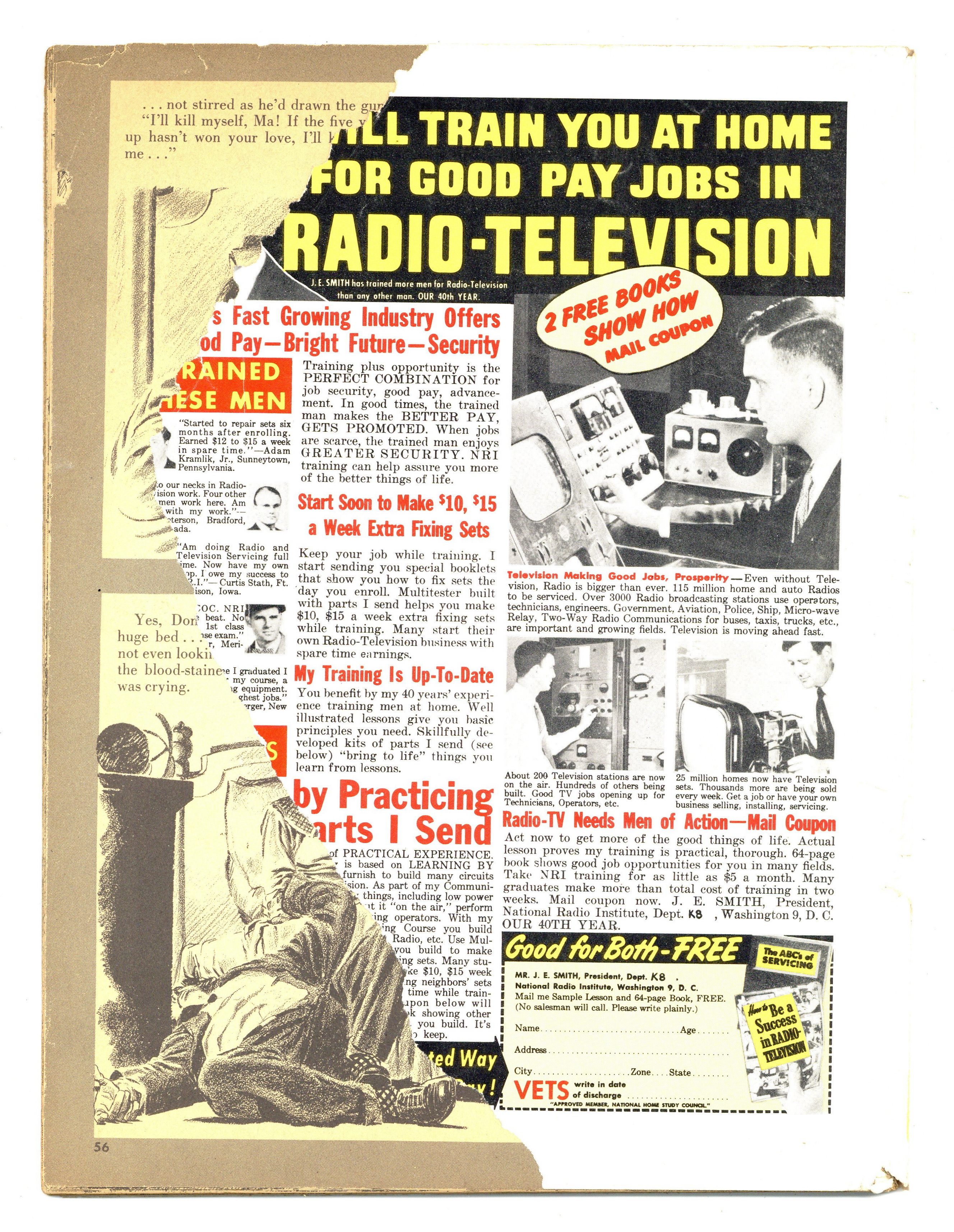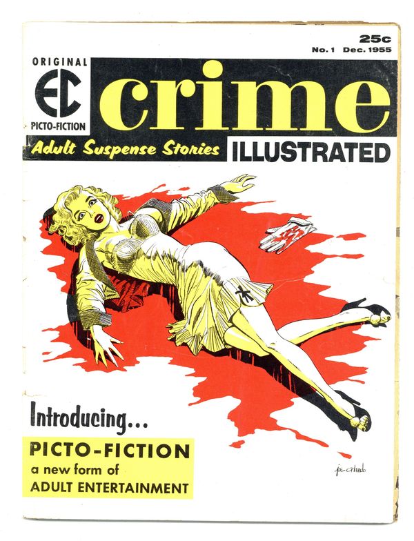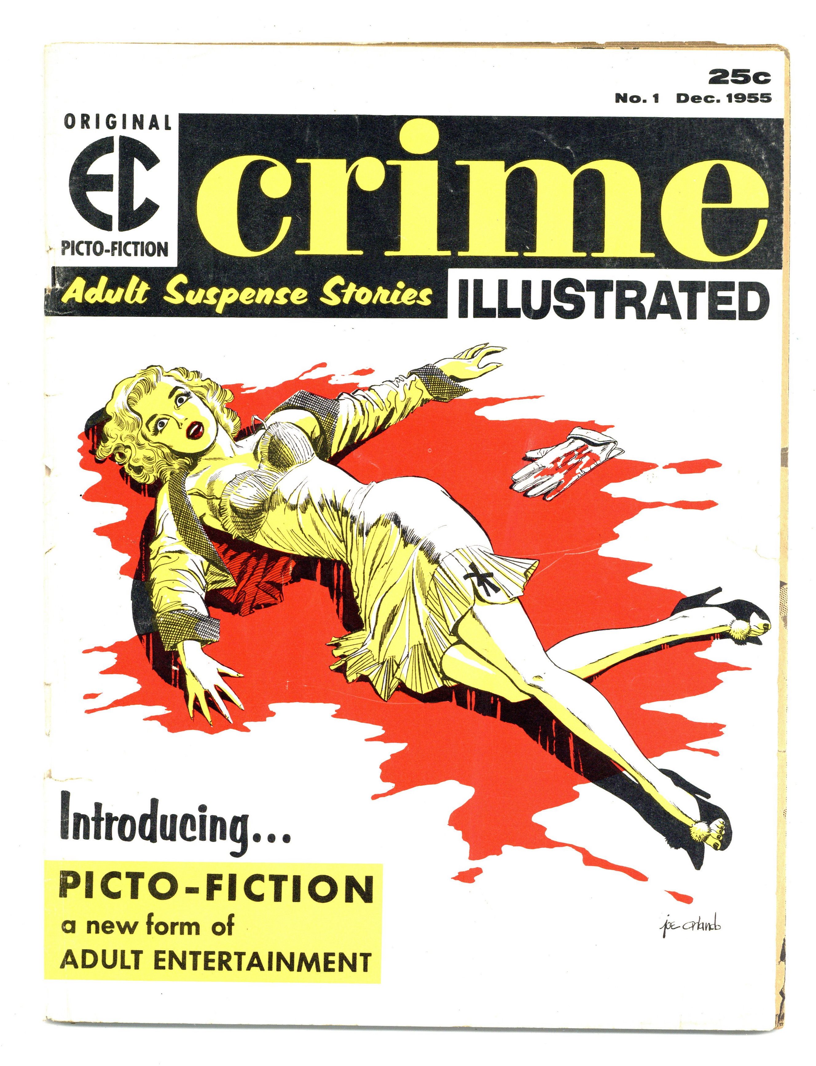Cover by Joe Orlando. Stories by Al Feldstein, Jack Oleck, John Larner, and Richard Smith. Art by Jack Kamen, Joe Orlando, Reed Crandall, and Johnny Craig. Part of EC's Picto-Fiction line, published in response to the Comics Code, featuring tales of law and outlaws in text stories copiously illustrated by EC's lineup of artists. A private eye investigating a woman's disappearance finds a vital clue in a mystery novel, but fails to notice the title, "Fall Guy For Murder," adapted from a story that originally appeared in Crime Suspenstories (1950-55 E.C. Comics) #18. In a noirish story, a chance encounter on the street gets Ben involved with the dangerous lives of Myra and her sister. Another historic moment occurs in Mother's Day (adapted from a story that originally appeared in Crime Suspenstories (1950-55 E.C. Comics) #21), when writer Al Feldstein uses the soon-to-be-famous moniker "Alfred E. Neuman." Vivid cover by Joe Orlando definitely would not have passed muster with the new Comics Code. Fall Guy For Murder; The Sisters; Fools Gold; Farewell To Arms; Mothers Day 8 1/2-in. x 11-in., 60 pages, Full Color. Cover price $0.25. Grade: FR 1.0 explanation of grade Condition: Used (collectible)