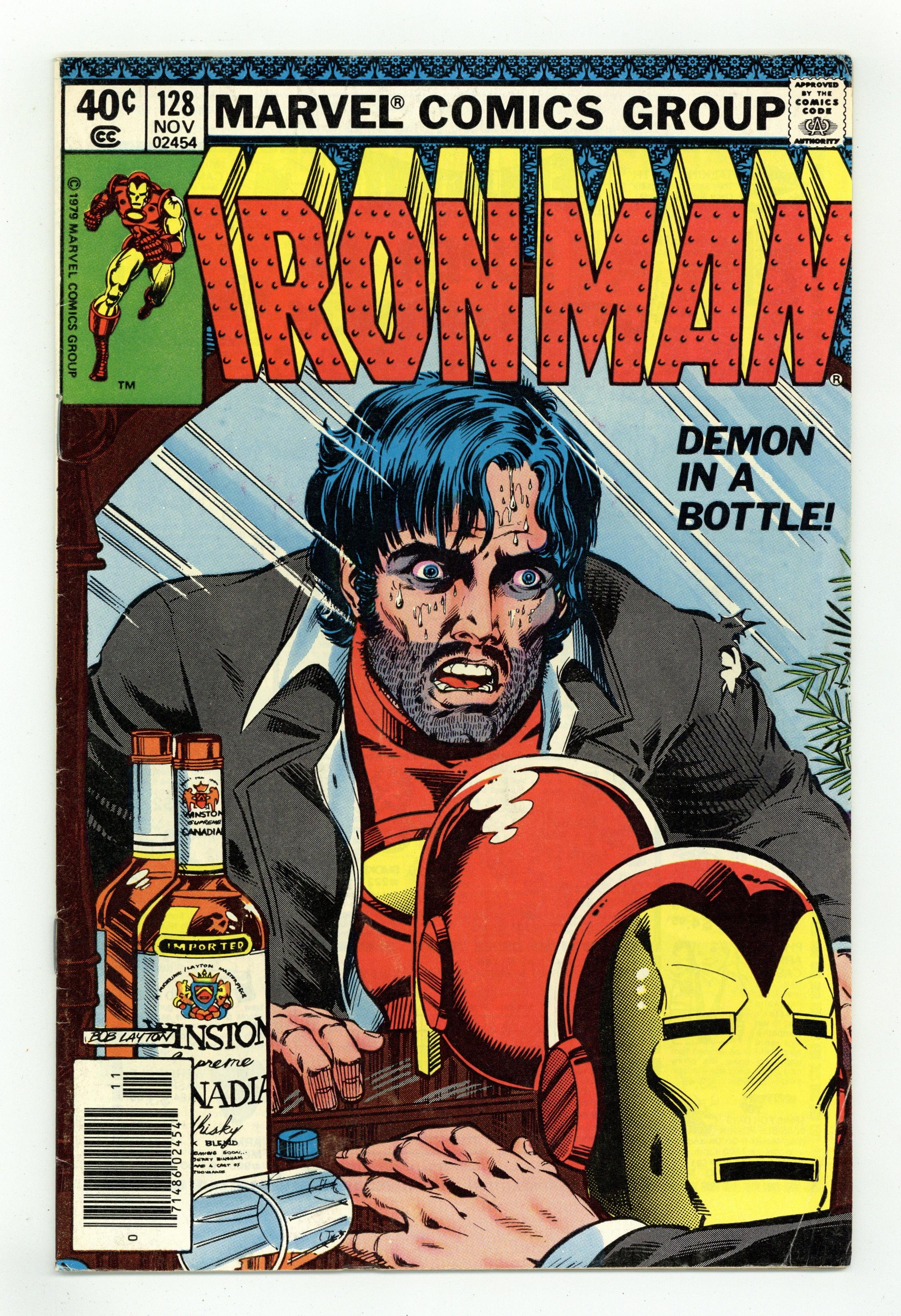 Direct Edition. "Demon in a Bottle" Plot by David Michelinie and Bob Layton. Script by David Michelinie. Art by John Romita Jr. (breakdowns) and Bob Layton (finishes). Cover by Bob Layton. One of the most critically acclaimed Iron Man stories, "Demon in a Bottle" explores the flaws of the man behind the helmet. Tony Stark's struggle with alcoholism comes to a head in this pull-no-punches look at his problem. Appearances by Bethany Cabe and Jarvis. (Note: This issue was reprinted in 2006 in the trade paperback: Iron Man Demon in a Bottle; and again in 2008 in the hardcover: Iron Man Demon in a Bottle.) 32 pages. Cover price $0.40. Grade: VG+ 4.5 explanation of grade Condition: Used (collectible)