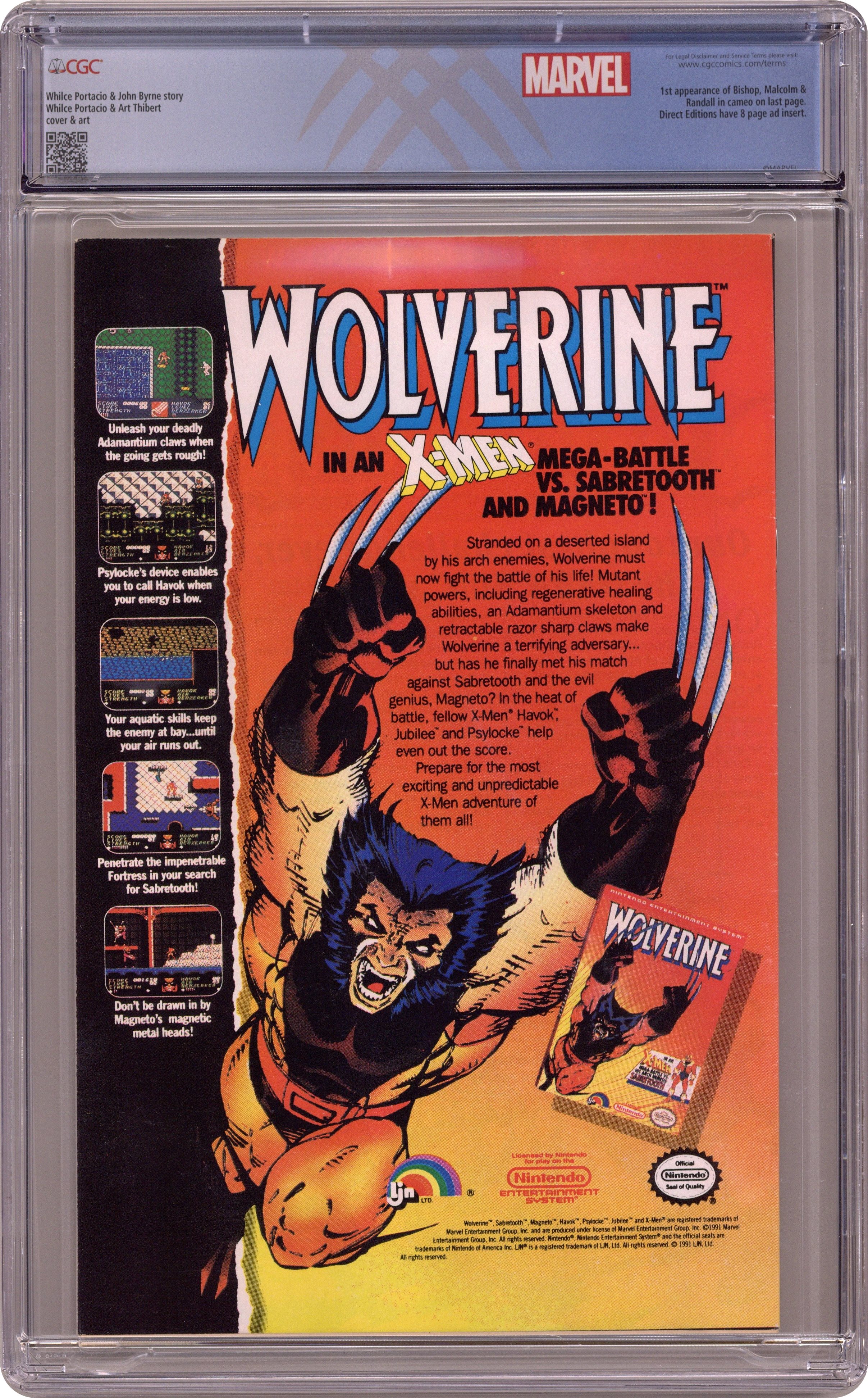 Ended Sep 26 2023 Winning Bid $32 Direct Edition. "Payback!" Story by Whilce Portacio and John Byrne. Art by Whilce Portacio and Art Thibert. In one fell swoop the Upstarts have destroyed the Reavers and crippled the Hellfire Club. Next up, the Mutant Liberation Front. Who can stop these powerful new foes? Enter: Bishop! NOTE: 1st appearance of Bishop. 40 pgs. Cover price $1.00. Grade: CGC 9.0 explanation of grade Condition: Used (collectible)