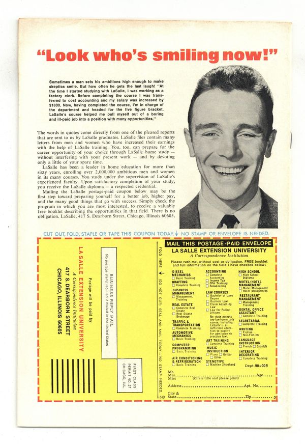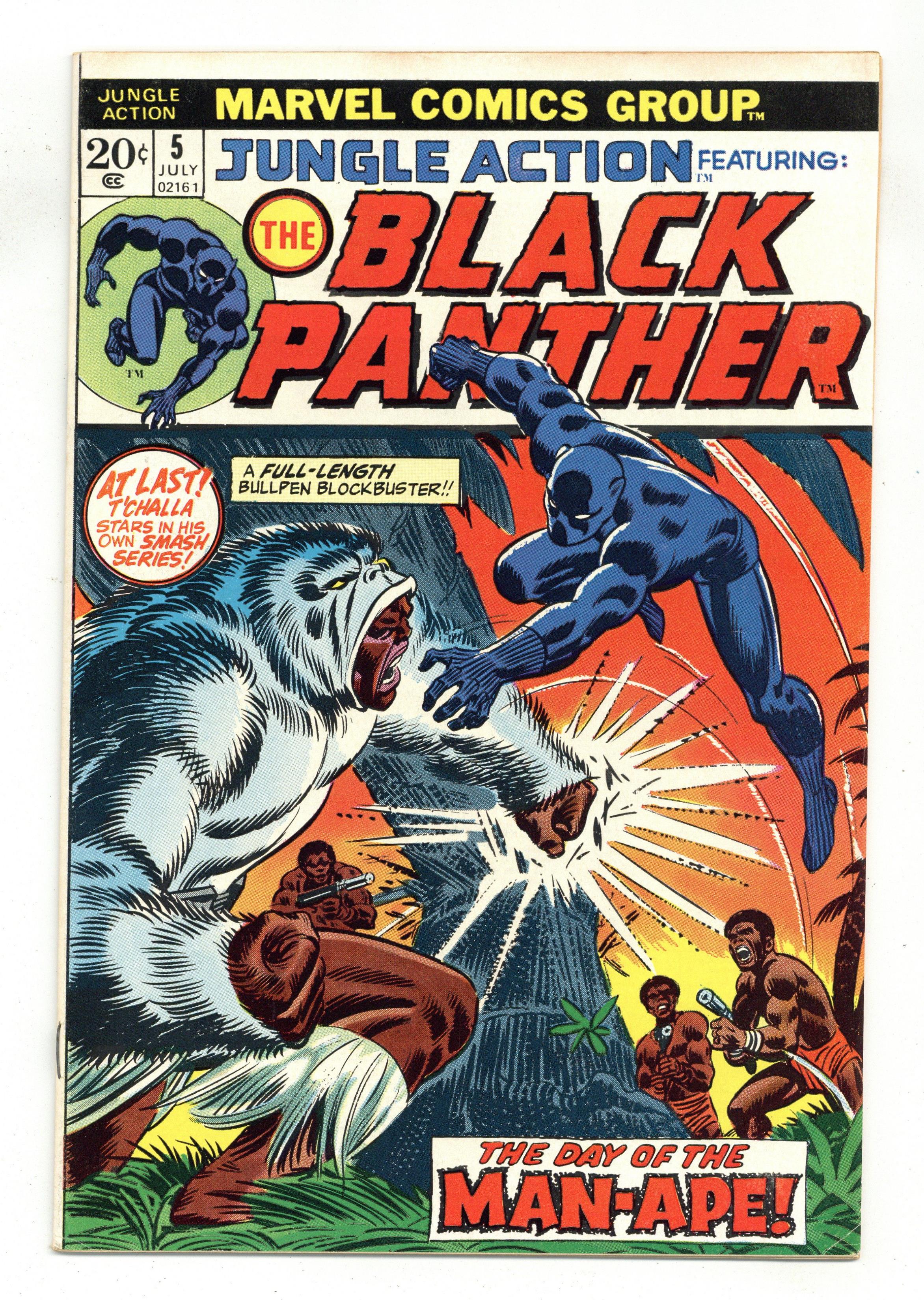 Black Panther stories begin. Cover art by John Romita. The Monarch and the Man-Ape! (reprinted from Avengers 62), script by Roy Thomas, pencils by John Buscema, inks by George Klein; When the Black Panther and his fellow Avengers return to Wakanda they are captured by M'Baku, who plans to kill the Black Panther. Ad for The Ultimate Fan Club! FOOM! Friends Of Ol' Marvel. Monsters Unleashed ad. 36 pgs., full color. Cover price $0.20. Grade: FN+ 6.5 explanation of grade Condition: Used (collectible)
