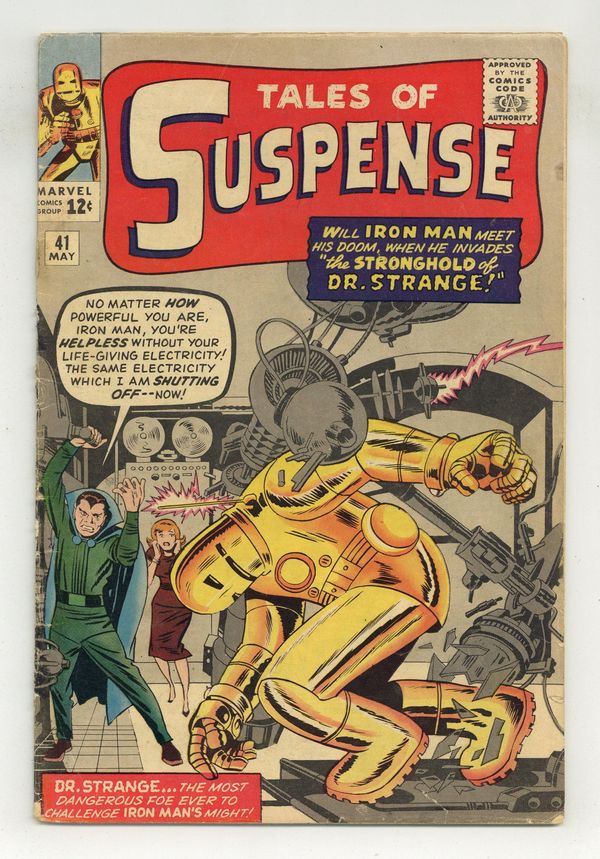 Ended Apr 14 2023 Winning Bid $183 Cover by Jack Kirby. In the third appearance of Iron Man, he battles an evil genius named Doctor Strange - but it's not the Stephen Strange later introduced in Strange Tales - in "The Stronghold of Dr. Strange!", script by Stan Lee (plot) and Robert Bernstein (as R Berns), pencils by Jack Kirby, inks by Dick Ayers; An imprisoned criminal scientist takes control of Iron Man in order to free himself; He threatens to blow up the world unless he is made world ruler. "Music Master" text story. "The Sorcerer's Spell," script by Stan Lee (plot) and Larry Lieber (script), pencils by Larry Lieber, inks by Sol Brodsky; A wicked general plots the overthrow of his king, but is too afraid to try; He forces a gypsy sorcerer to enchant him to remove his fear. "The End of the Universe!", script by Stan Lee, art by Steve Ditko; In the year 3000 a faster than light space ship is developed to take man to the very end of the universe; Since the scientists think the chances of returning are slim, they choose a pilot with an unhappy life of no family, friends, or job who doesn't really care if he can return as long as he learns the secret of the universe. 36 pgs., full color. $0.12. Cover price $0.12. Grade: GD+ 2.5 explanation of grade Condition: Used (collectible)