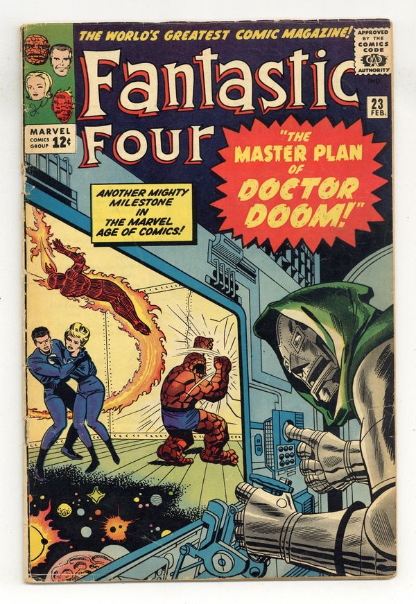 1st appearance of the Terrible Trio - Cover pencils by Jack Kirby, inks by George Roussos. The Master Plan of Doctor Doom!, script by Stan Lee, pencils by Jack Kirby, inks by George Roussos [as George Bell]; Doctor Doom recruits three criminals to help him destroy the Fantastic Four. 36 pgs. $0.12. Cover price $0.12. Grade: VG- 3.5 explanation of grade Condition: Used (collectible)
