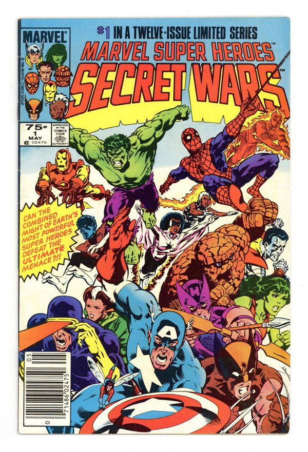 Direct Edition. "The War Begins!" Part 1 of 12. Story by Jim Shooter. Art by Mike Zeck and John Beatty. This is it, the granddaddy of all epic events. Before Identity Crisis, Infinite Crisis, House of M, Civil War, and Infinity Gauntlet there was Secret Wars. A nigh omnipotent being from beyond has, for lack of a better word, kidnapped the greatest heroes and deadliest villains in the Marvel Universe and whisked them to the far side of the universe to battle for the ultimate prize. One thing is for certain, the lives of these heroes and villains will never be the same again. - This is the first printing. Any 2nd printing will have the words "Second Printing" at the bottom of the first page. NOTE: Nearly all first printings contain a "Blue Galactus" from a printing error (a lack of magenta printing plates) that was corrected in later printings. While small number of First printings may have the correct colors, the majority of copies will have "Blue Galactus". Due to the frequency, "Blue Galactus" variants should be treated the same as other First Printings. 36 pages, full color. Cover price $0.75. Grade: VG+ 4.5 explanation of grade Condition: Used (collectible)