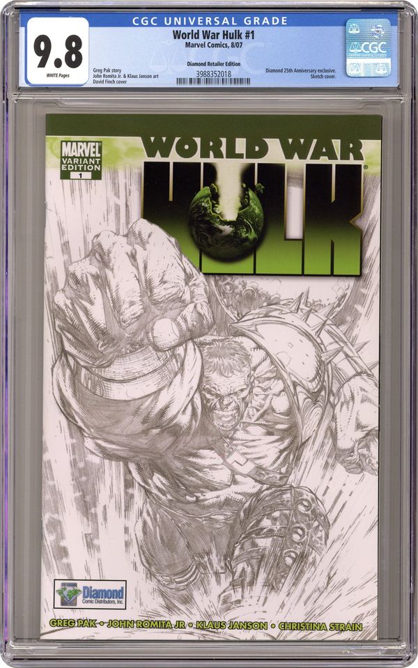 World War Hulk (2007) 1C CGC 9.8 Finch Diamond Sketch Variant