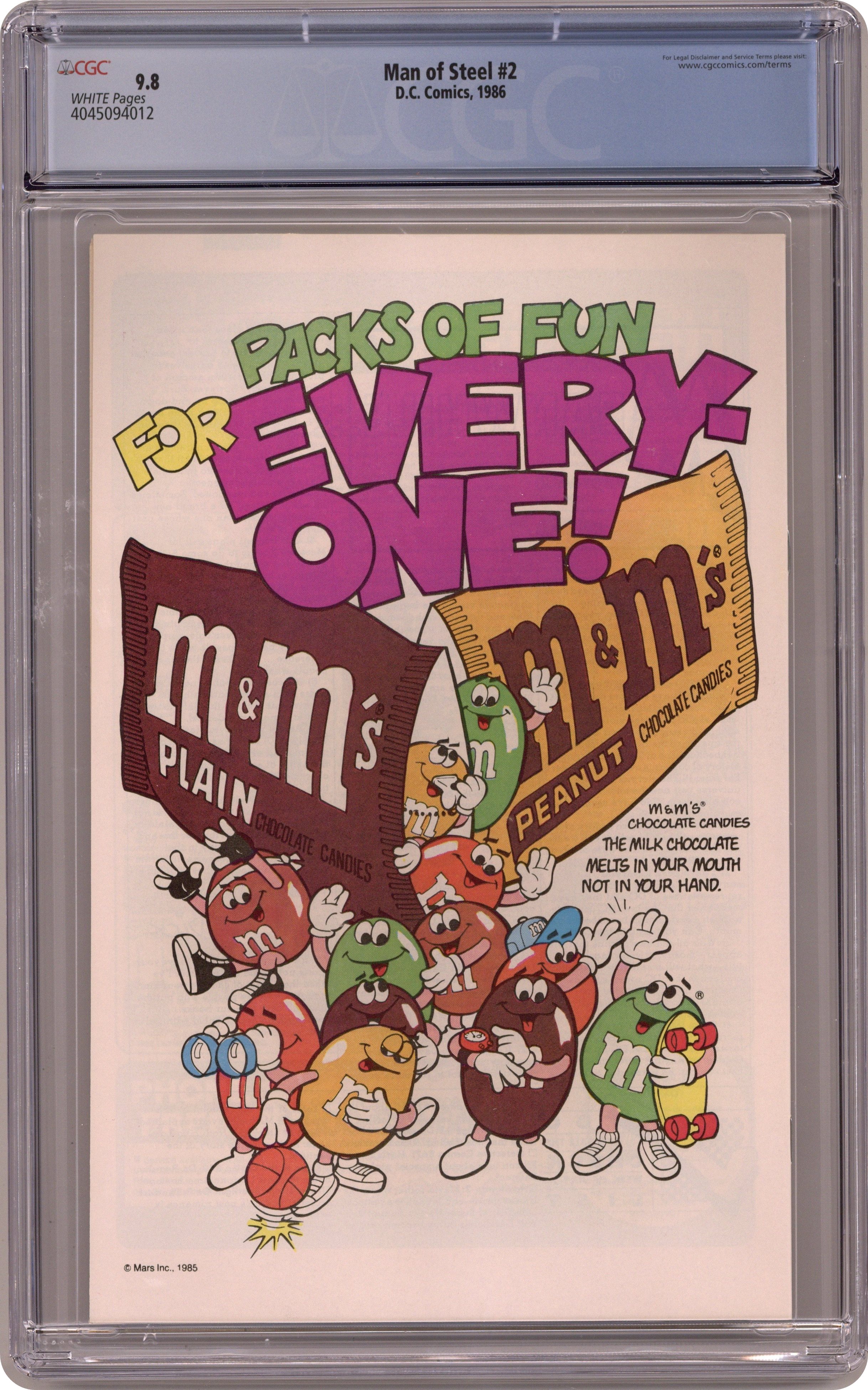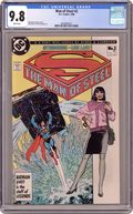 Published just a few months after Crisis on Infinite Earths, John Byrne's The Man of Steel updated the saga of Superman for modern audiences, changing certain aspects of the character in the process. In this issue Lois Lane drives off a pier in order to get Superman's attention so she can interview him for The Daily Planet. In addition, Clark writes his first story for the Planet. Unlike the pre-Crisis Lois Lane, the revised Lois doesn't spend time trying to uncover Superman's secret identity (since no one knows he has a secret identity). Written and drawn by John Byrne, with inks by Dick Giordano. Cover price $0.75. Grade: CGC 9.8 explanation of grade Condition: Used (collectible)