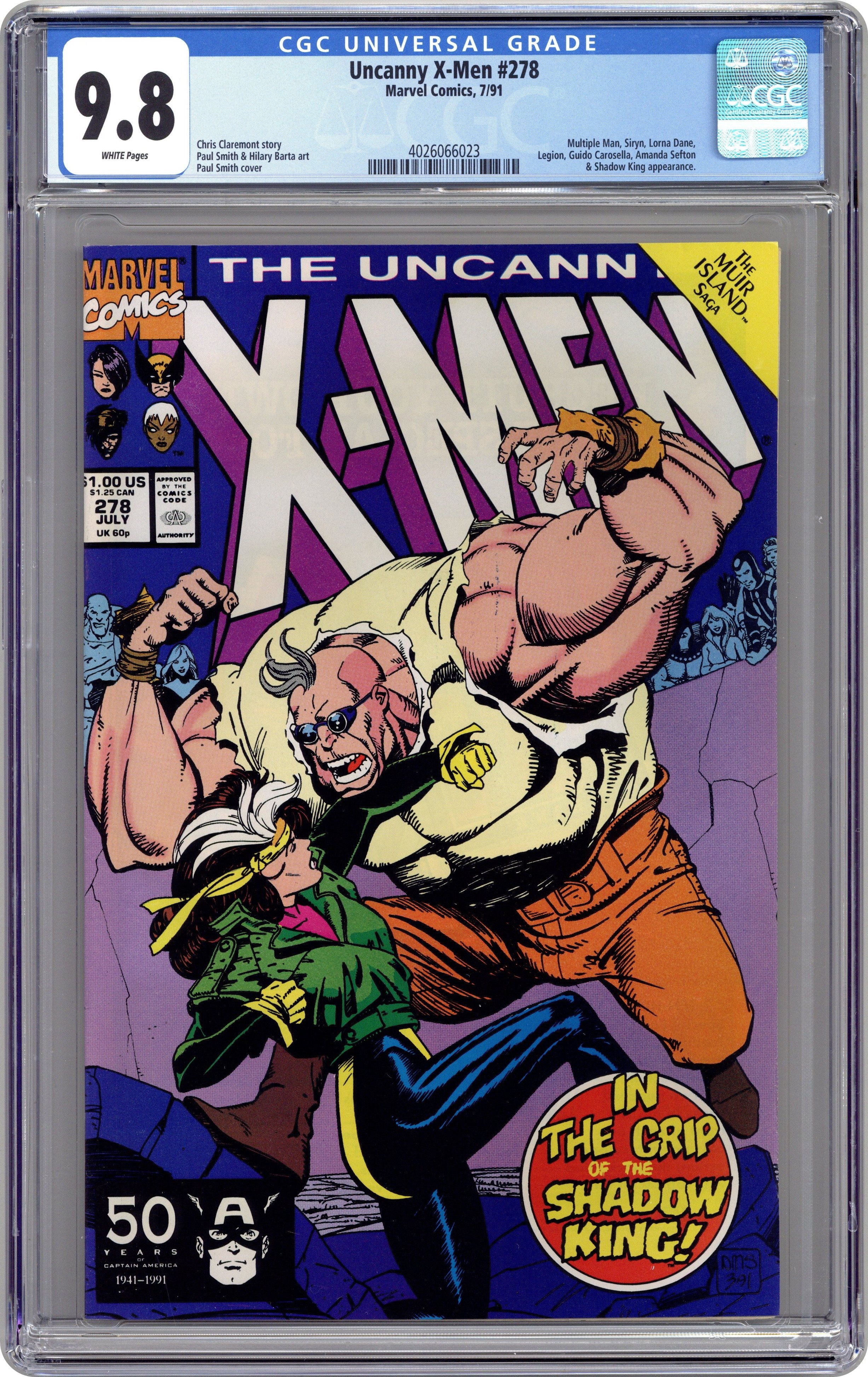 Muir Island Saga: Part 1 of 4. "Double Death!" Story by Chris Claremont. Art by Paul Smith and Hilary Barta. Professor X's greatest foe the Shadow King has enslaved Muir Island. Can the X-Men save their friends without hurting them, or getting hurt themselves? Don't bet on it. 36 pgs. Cover price $1.00. Grade: CGC 9.8 explanation of grade Condition: Used (collectible)