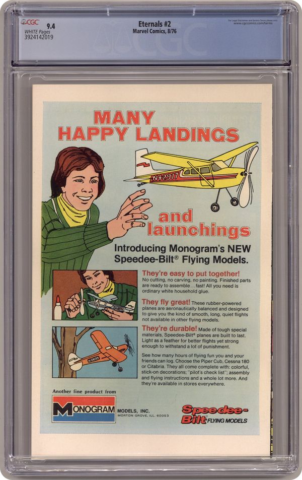 "The Celestials!" Written by Jack Kirby. Pencils by Jack Kirby. Inks by John Verpoorten. The gods are real and they live among us! Archeologist Doctor Damian and his daughter Margo, led by the enigmatic Ikaris, soon learn that they are not alone in this universe. But could the return of the space gods known as the Celestials possibly mean. Note: 1st appearance of Ajak and the Celestial Arishem the Judge. Cover price $0.25. Grade: CGC 9.4 explanation of grade Condition: Used (collectible)