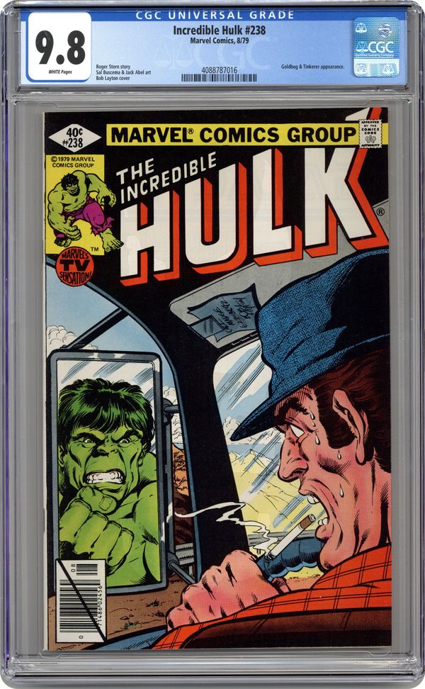 "Post Hulk, Post Holocaust!" Special guest-appearance by President Jimmy Carter. Doc Samson cameo. Story by Roger Stern. Art by Sal Buscema and Jack Abel. In the wake of the Hulk, Central City lies in ruins leaving S.H.I.E.L.D. behind to clean-up the mess. Plus, the debut of the new villain Goldbug. 36 pages. Cover price $0.40. Grade: CGC 9.8 explanation of grade Condition: Used (collectible)